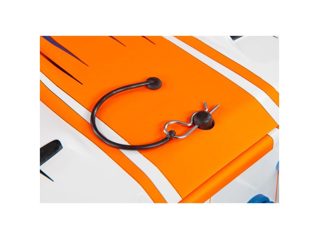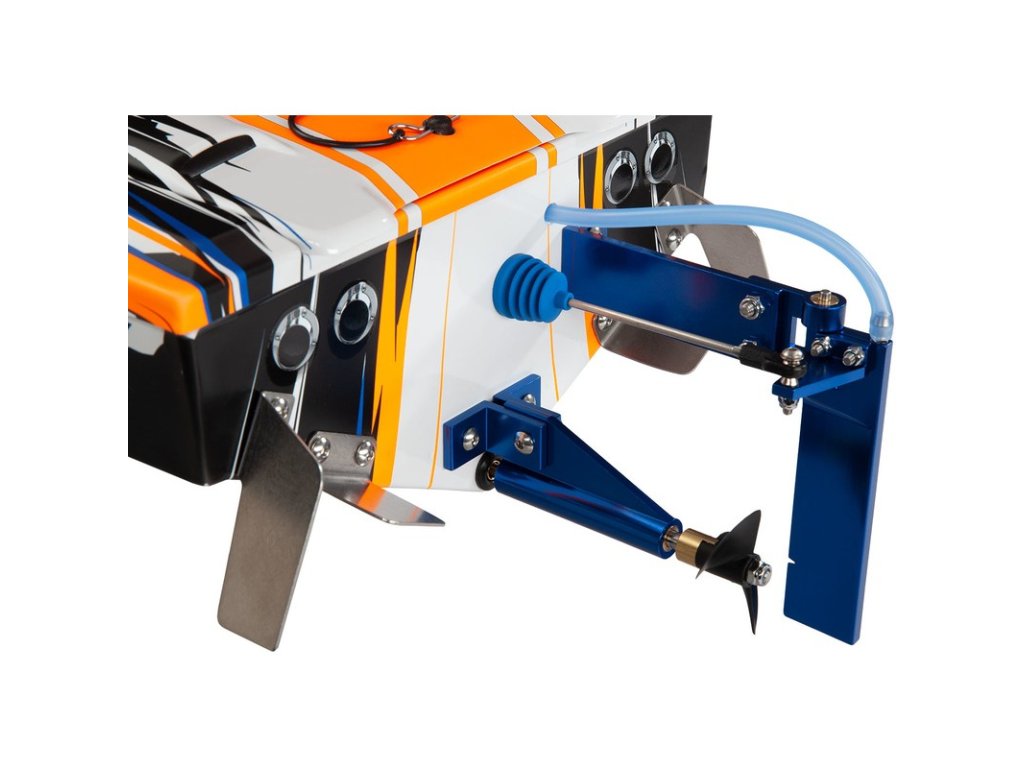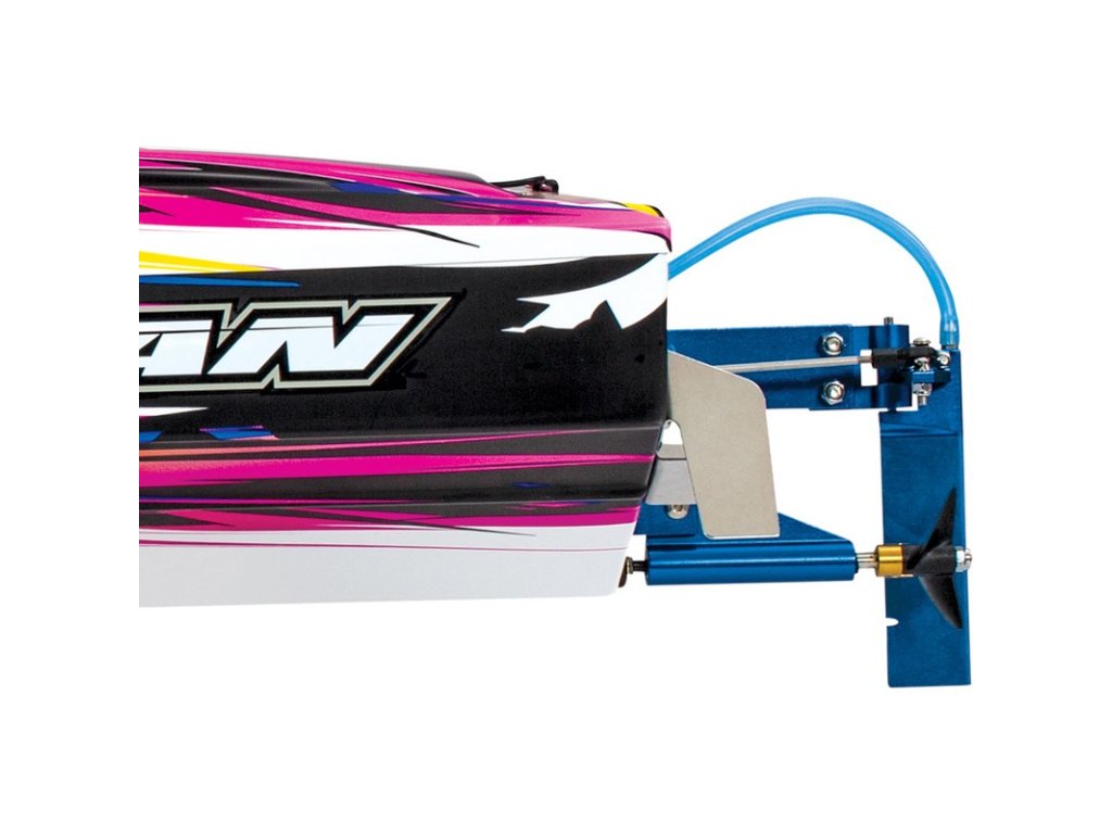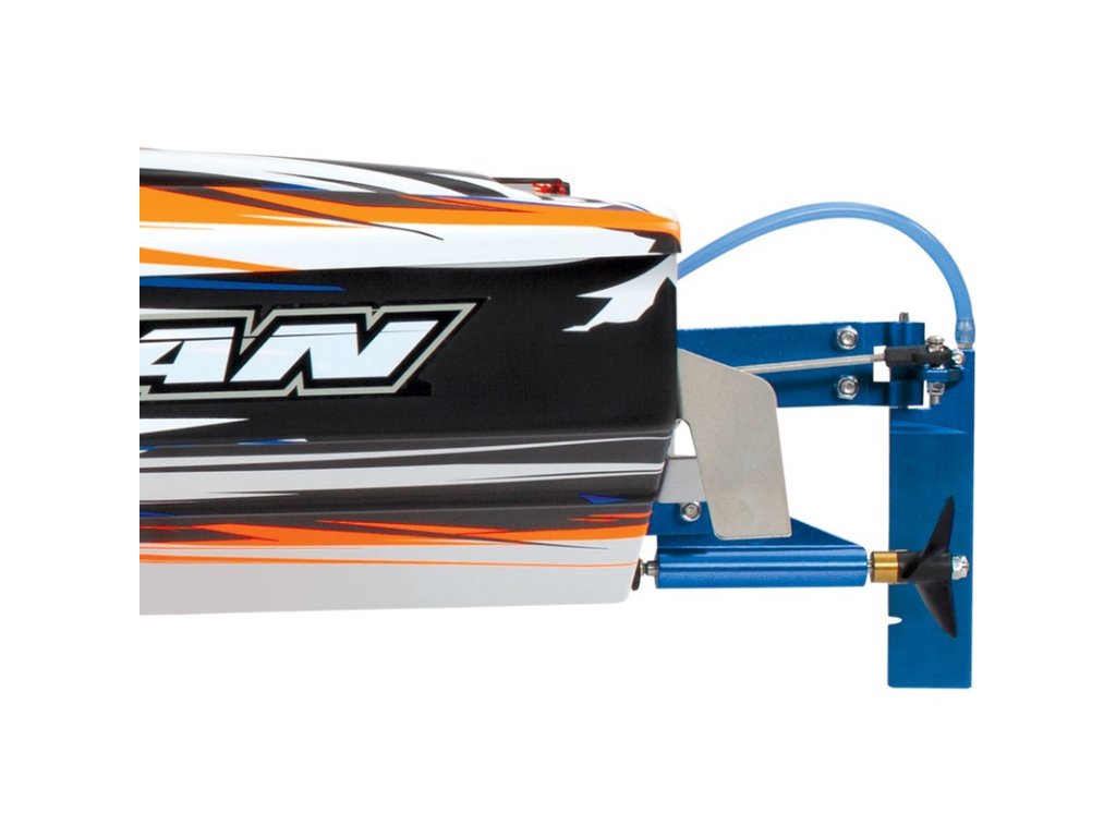 Modře eloxované hliníková kormidlo umožňuje přesné řízení vašeho člunu. Chlazení motoru a regulátoru je zajištěno nasáváním vody otvorem v kormidle, které je účinnější i při nižších rychlostech.