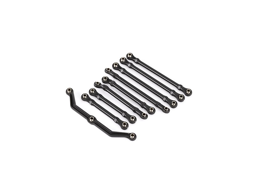 Náhradní díl pro RC model aut Traxxas TRX-4M s prodlouženým rozvorem 162 mm: sada spojovaček (kompletní, přední a zadní). Obsahuje: 1x spojovačku řízení, 2x spodní přední spojovačku, 2x přední horní spojovačku, 4x zadní spojovačku. Sestavené včetně kulových čepů.
