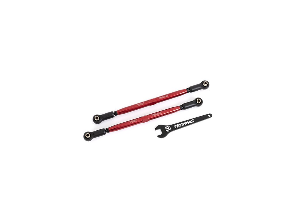 Traxxas spojovačka řízení hliníková červená (2 ks) - barevně eloxovaný díl, vyrobený z lehkého a vysoce odolného hliníku 7075-T6. Náhradní díl pro RC model auta Traxxas Funco a dále pro XRT / X-Maxx s instalovanou sadou rozšířeného rozchodu WideMaxx.