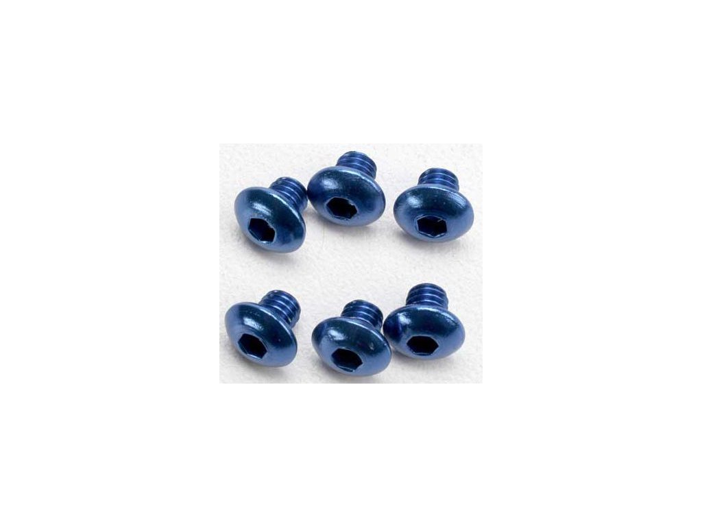 Traxxas šroub imbus s půlkulatou hlavou M4x4 mm, modře eloxovaný hliník. Balení obsahuje 6 ks.