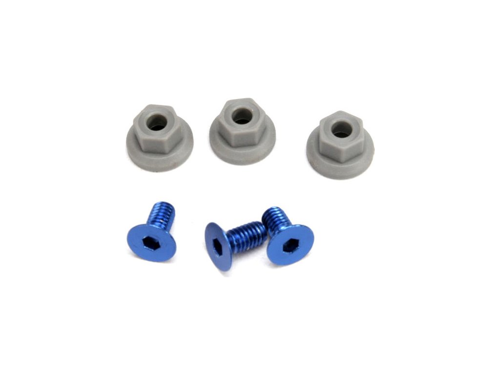 Šroub křídla imbus zápustná hlava M4 x 8 mm značky Traxxas. Balení obsahuje 3 šroubky, 3 matice M4 z nylonu.