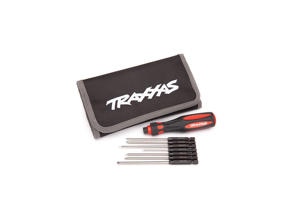 Traxxas šroubovák s výměnnými bity (sada Master) obsahuje ručku Premium s výměnnými bity imbus 1.5, 2.0, 2.5, 3.0 mm a bity s kuličkou 2.0, 2.5, 3.0 mm. Pouzdro na nářadí s vyšitým logem.