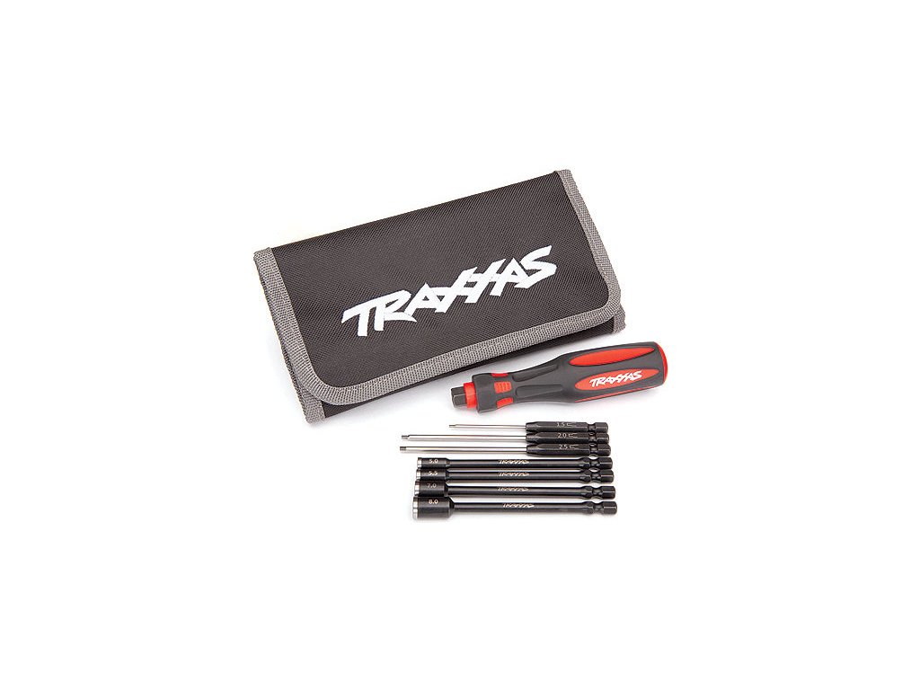 Traxxas šroubovák s výměnnými bity ( sada Essential ) obsahuje ručku Premium s výměnnými bity imbus 1.5, 2.0, 2.5 mm a bity nástrčné 5.0, 5.5, 7.0, 8.0 mm. Pouzdro na nářadí s vyšitým logem.