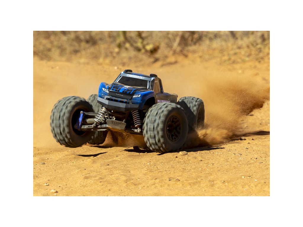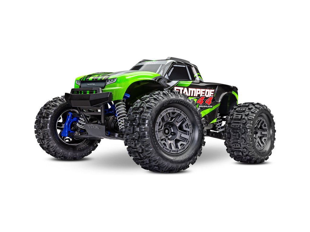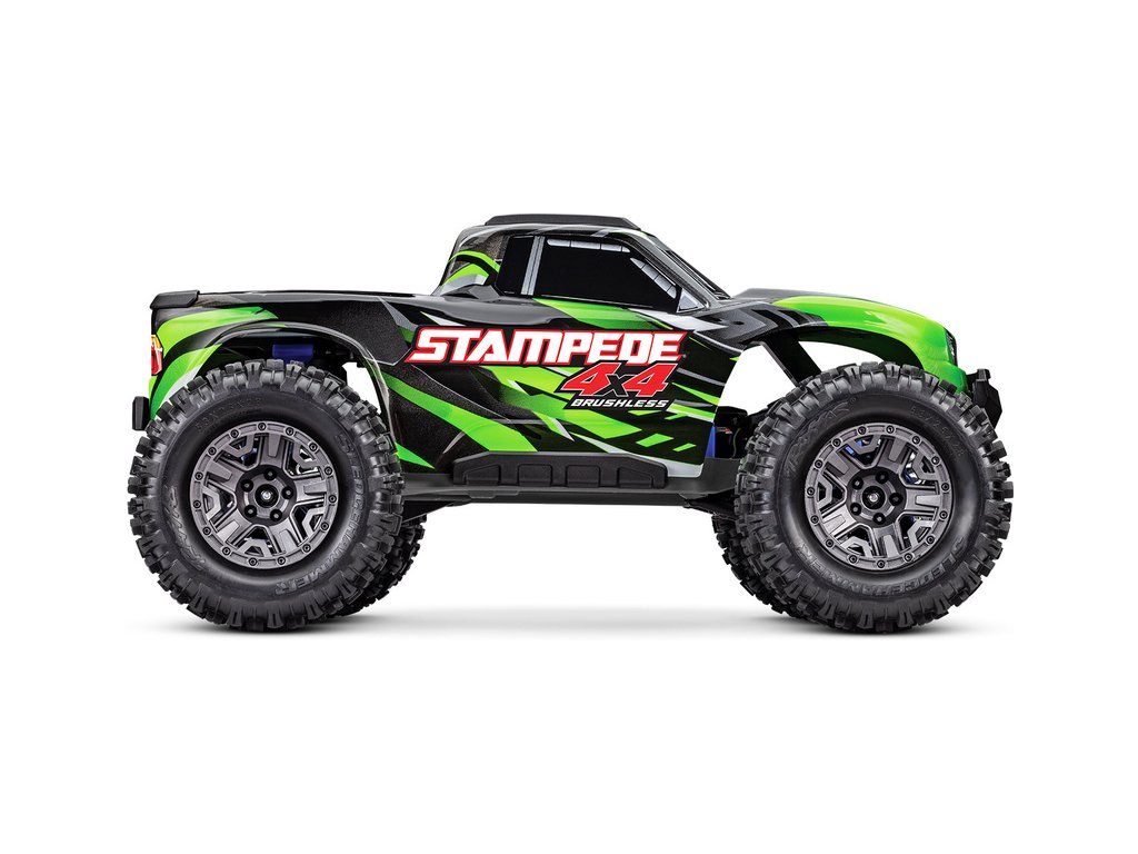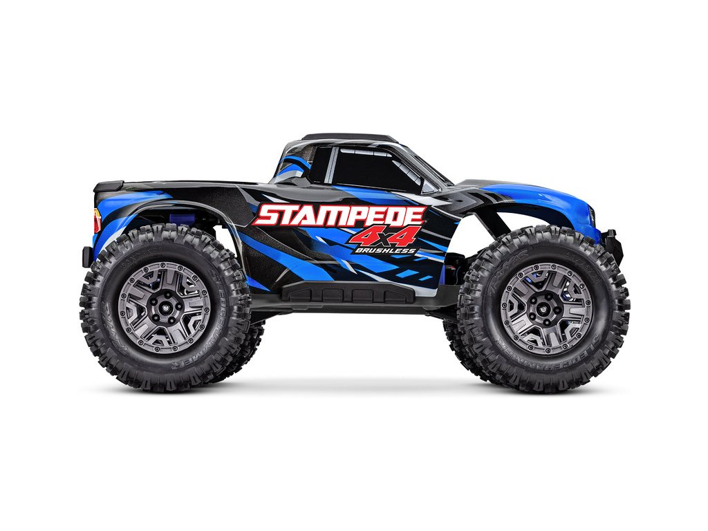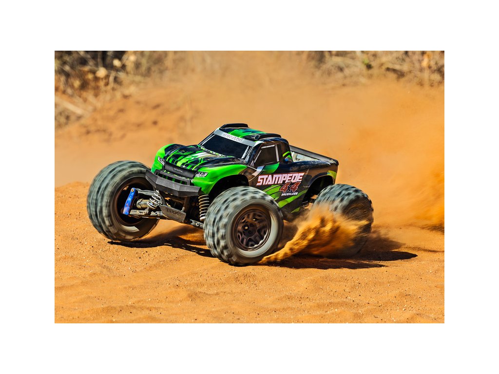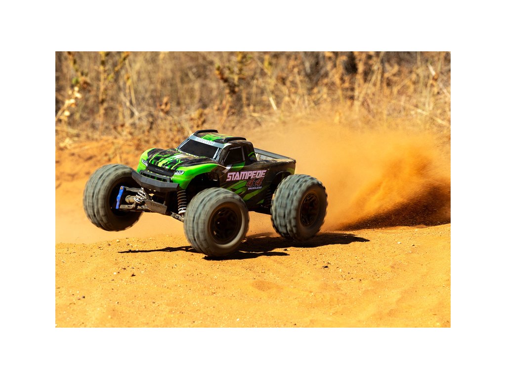 RC model auta Stampede 4X4 je větší, odolnější a drsnější než kdy předtím, s prodlouženým podvozkem, většími koly 5,3" s pneumatikami Sledgehammer ® a exkluzivní bezsponkovou karosérií. Model je poháněn střídavým motorem a regulátorem BL-2S pro napájení 2S LiPo akumulátory. Střídavý pohonný systém přináší brutálnější akceleraci, dlouhou životnost a zvýšení rychlosti modelu až na 56 km/h. Navíc je model továrně vybaven sadou Extreme Heavy Duty pro vysokou odolnost.