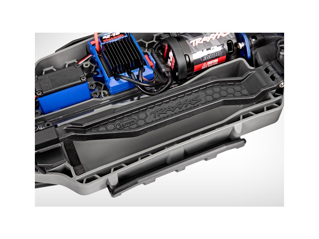 Osvědčená konstrukce modelu Stampede byla zachovaná, včetně modulární konstrukce šasi, špičkové geometrie zavěšení, pohonného ústrojí s třecí spojkou a předního a zadního diferenciálu. Pro vyšší stabilitu byl prodloužen rozvor na 295 mm a do přihrádky baterie lze nově vložit ploché 7 čl. akumulátory NiMH, jako u ostatních modelů Traxxas. Díky náhonu 4WD a střídavému pohonu zažijete nespočet hodin perfektní ovladatelnosti a bleskové akcelerace.