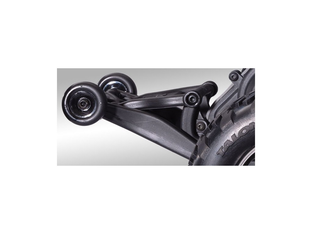 Díky zadní liště s kolečky Wheelie si můžete užít jízdu po zadních kolech bez obav o převrácení modelu. Odolný nylonový držák koleček navíc přináší extra ochranu pro motor a převodovku.