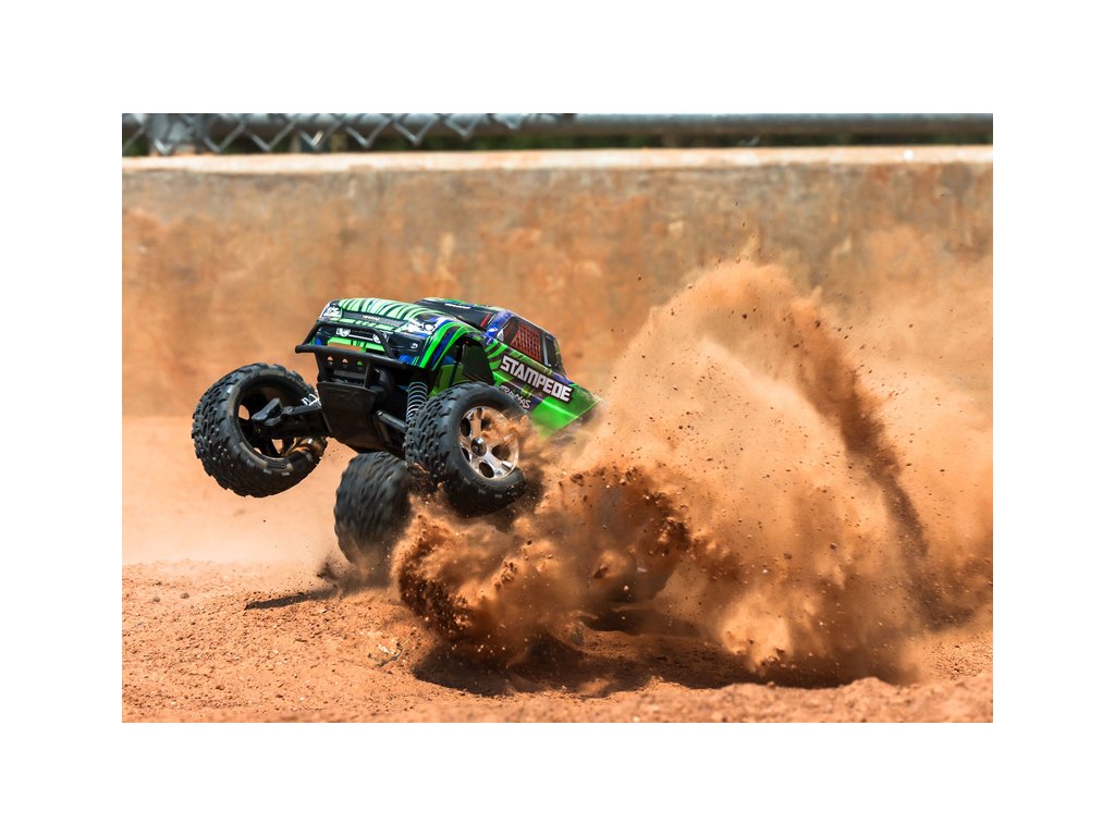 RC model auta Stampede 1:10 HD RTR, je poháněn stejnosměrným motorem Titan 550 a regulátorem XL-5 pro napájení 2S LiPo akumulátory. Model jezdí až 48 km/h! Navíc je továrně vybaven sadou Extreme Heavy Duty pro vysokou odolnost a exkluzivním bez-sponkovým systémem upínání karoserie. Vše pro provoz je obsahem balení včetně vysílače, pohonné baterie a USB-C nabíječe.