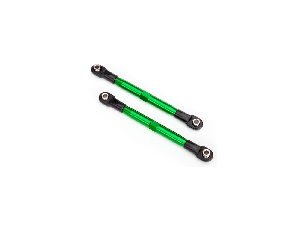Traxxas stavitelná ojnička řízení 87mm (2) - zeleně eloxovaná tyč, z velmi pevného hliníku 7075-T6. Ojničky s kulovými čepy. Hliníkový klíč pro přesné nastavení délky.