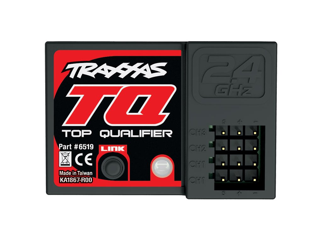 Tří-kanálový přijímač Traxxas TQ 2.4 GHz, zajišťuje bezpečné řízení bez výpadků. Snadné spárování jedním tlačítkem. Indikace stavu pomocí LED diody.