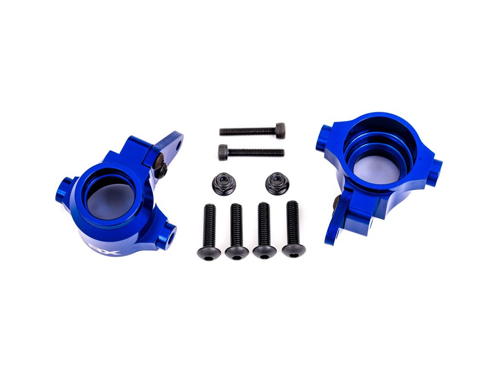 Tuningový díl z lehkého a odolného hliníku pro vyskou odolnost. Designové barevné eloxování - Traxxas těhlice přední hliníková modře eloxovaná (levá a pravá)