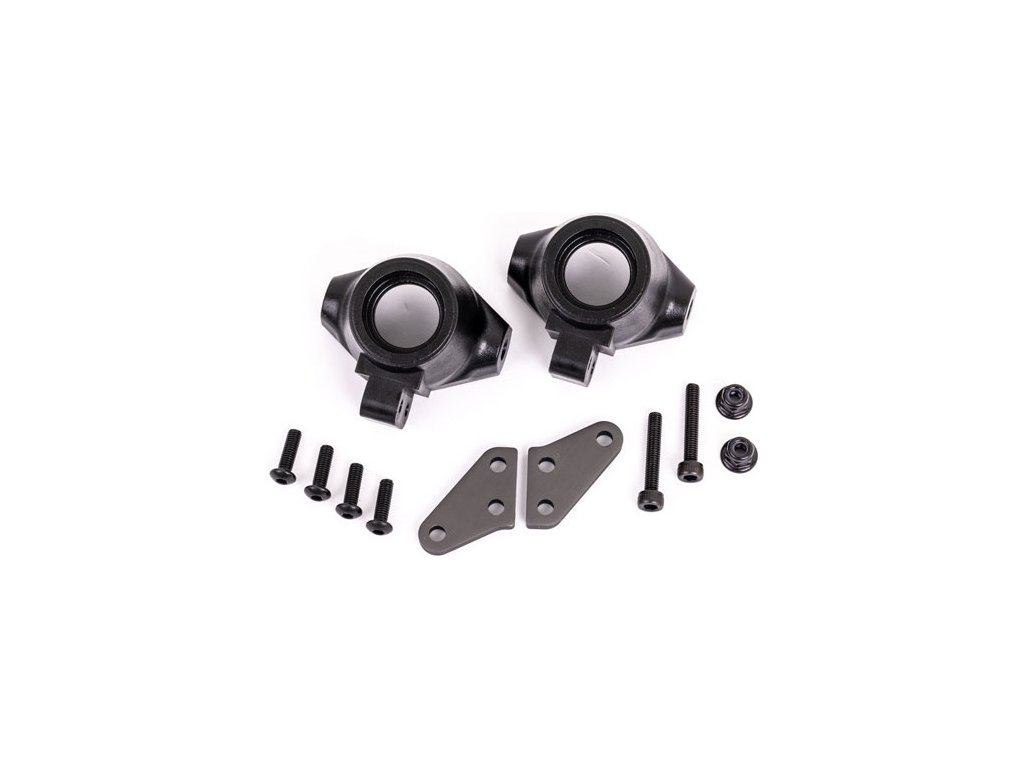 Tunignový díl pro RC model auta Traxxas Sledge. Traxxas těhlice přední hliníková titanově eloxovaná (levá a pravá).