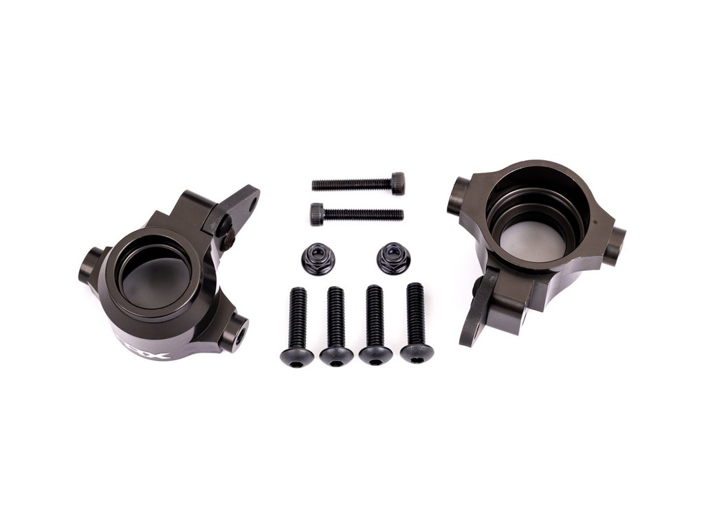 Tuningový díl z lehkého a odolného hliníku pro vyskou odolnost. Designové barevné eloxování - Traxxas těhlice přední hliníková titanově eloxovaná (levá a pravá)