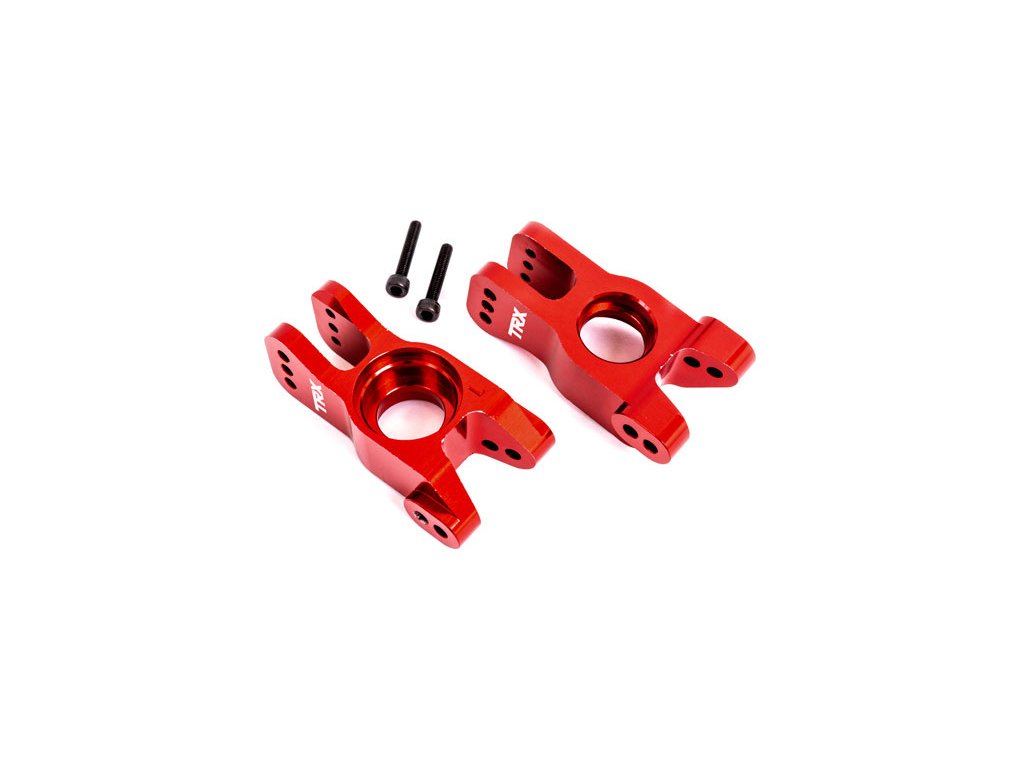 Tuningový díl z lehkého a odolného hliníku pro vyskou odolnost. Designové barevné eloxování - Traxxas těhlice zadní hliníková červeně eloxovaná (levá a pravá)