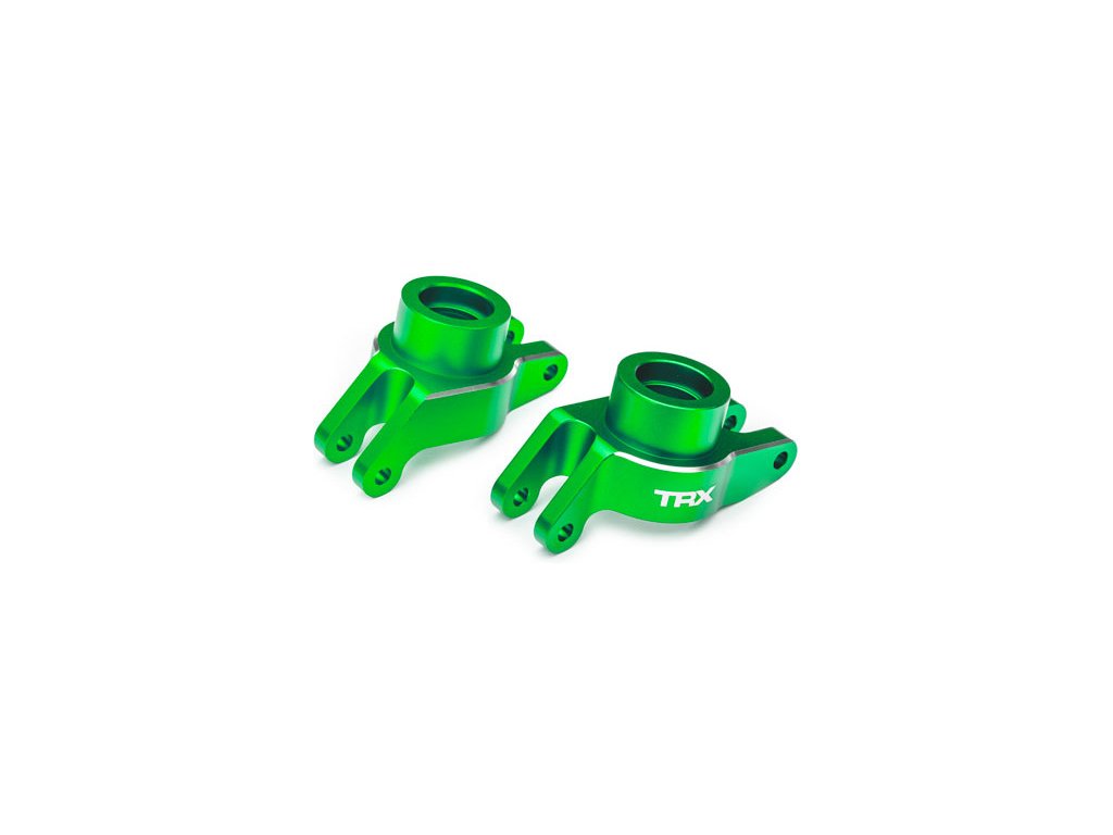 Traxxas těhlice zadní z vysoce odolného hliníku 6061-T6, přesně opracovaným na CNC pro zachování geometrie, zeleně eloxovaná pro úžasný vzhled modelu. Pár (levá a pravá).