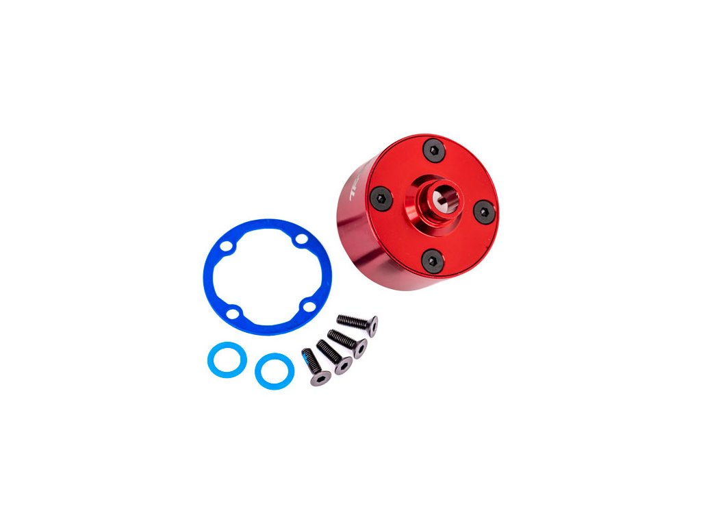 Traxxas tělo diferenciálu hliníkové červeně eloxované - těsnění, 4x šroub 3x10 mm CCS.