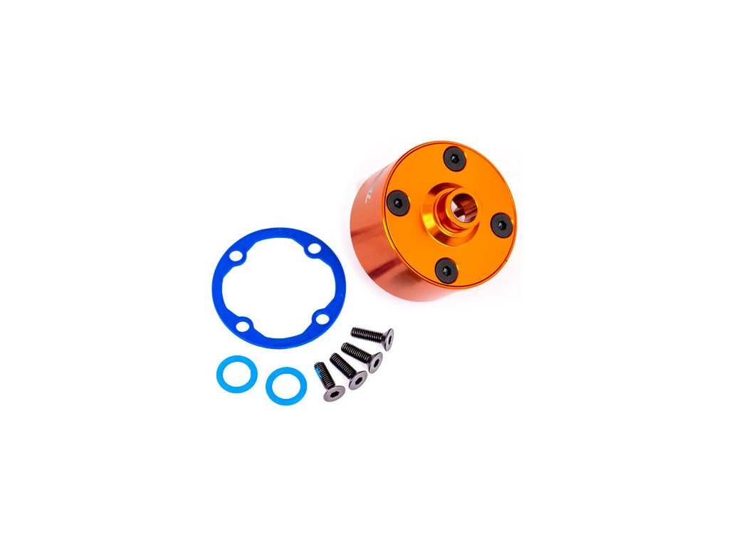 Traxxas tělo diferenciálu hliníkové oranžově eloxované - těsnění, 4x šroub 3x10 mm CCS.