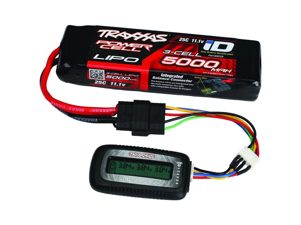 Traxxas tester LiPo akumulátorů slouží k jednoduchému a okamžitému zjištění napětí jednotlivých článků 1 až 6-ti článkového LiPo akumulátoru. Pro připojení LiPo akumulátorů Traxxas s iD konektorem slouží přibalený adaptér, klasické LiPo akumulátory se připojují přímo přes balanční konektor.