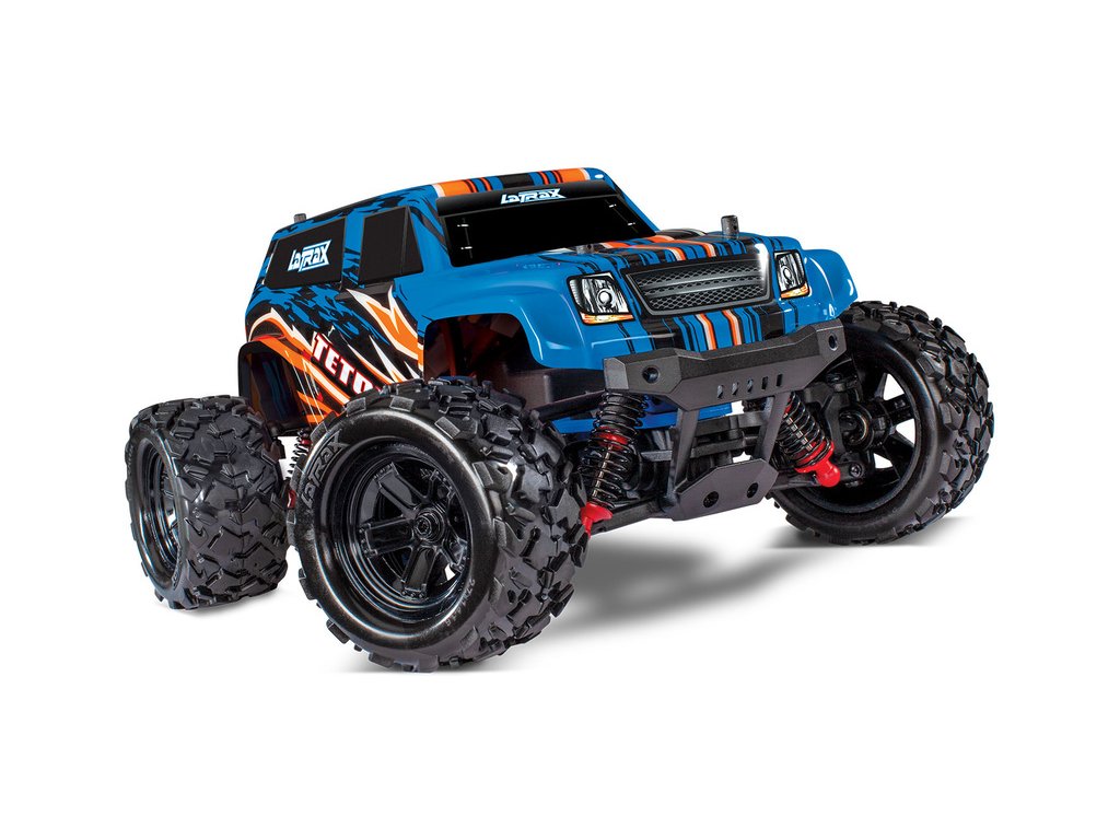 Velmi oblíbený malý a výkonný RC model auta Traxxas Teton. Cenově dostupný off-road monster truck v měřítku 1:18 od značky Traxxas. Náhon 4WD, nezávislé zavěšení, olejové tlumiče. RC souprava v pásmu 2.4 GHz, regulátor a proporcionální řízení. Rychlost až 30 km/h.