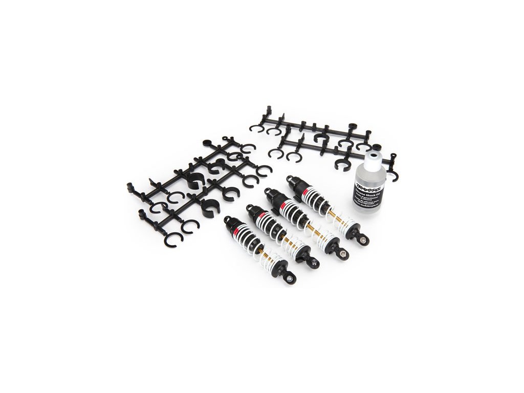 Tlumiče Big Bore pro RC modely aut Traxxas. Kompletní sada předních a zadních tlumičů. Tlumiče mají hliníkové tělo z vnitřní strany povlakované teflonem (PTFE), dále ocelové pístnice povlakovaní nitridem titanu (TiN). Balení obsahuje 4 kusy (2x Long, 2x XX-Long).