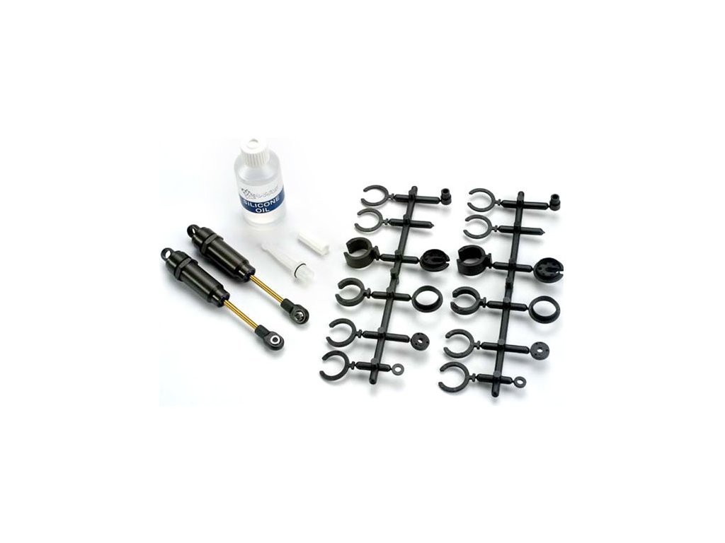 Traxxas hliníkový tlumič Big Bore long v dlouhém provedení bez pružin. Na vnitřní straně povlakovaný teflonem (PTFE). Pístnice jsou ocelové s povlakem nitridem titanu (TiN).