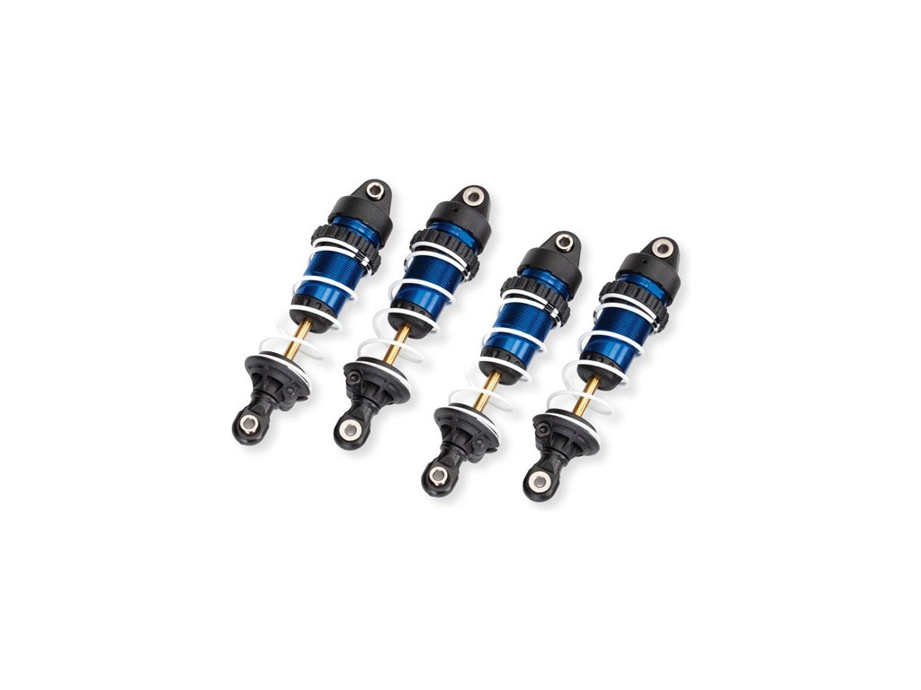 Vysoce kvalitní hliníkové tlumiče GTR Long (dlouhý) - sada 4ks. Sestavené s pružinami. Modře eloxované, potažené PTFE pro extra hladký chod a pístnice s TiN - nitridem titanu pro vysokou odolnost a tvrdost povrchu.