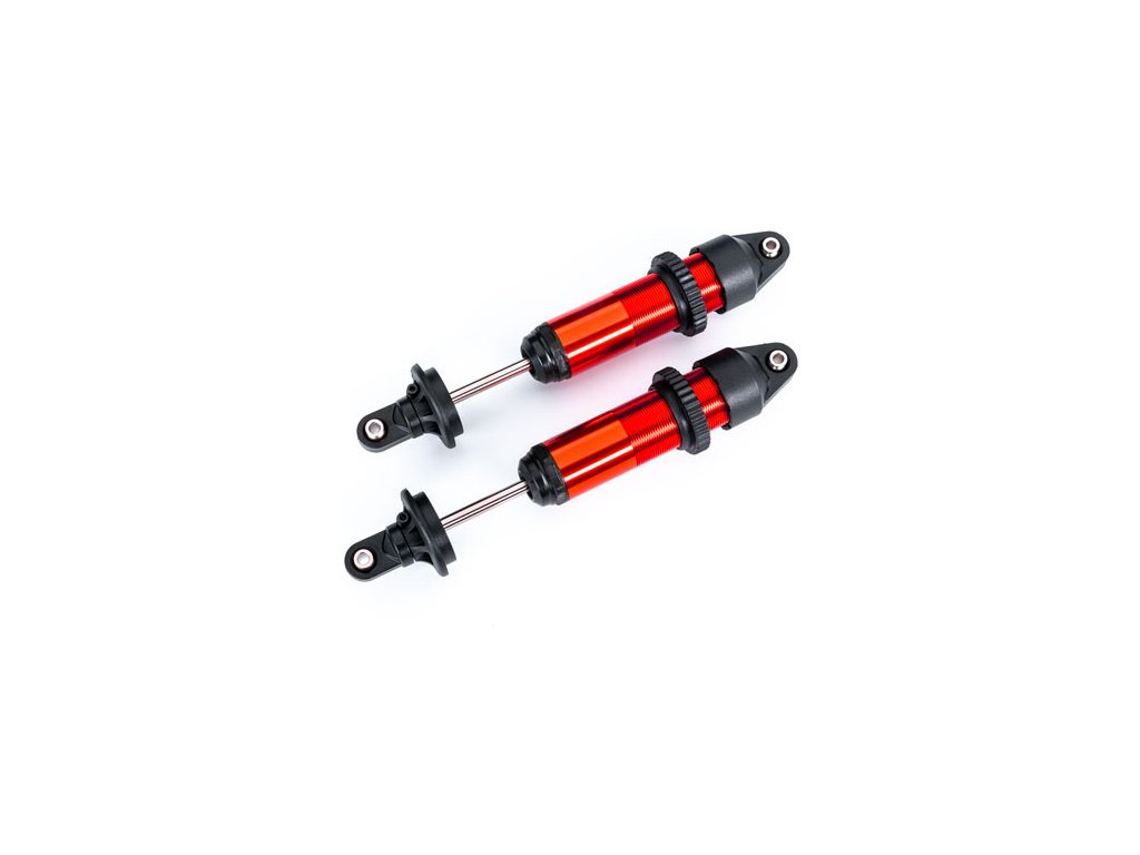 Traxxas tlumič GTX hliníkový červeně elexovaný (2ks). Nastavení pomocí matice. Plně sestavený. Pružiny a olej nejsou obsahem balení.