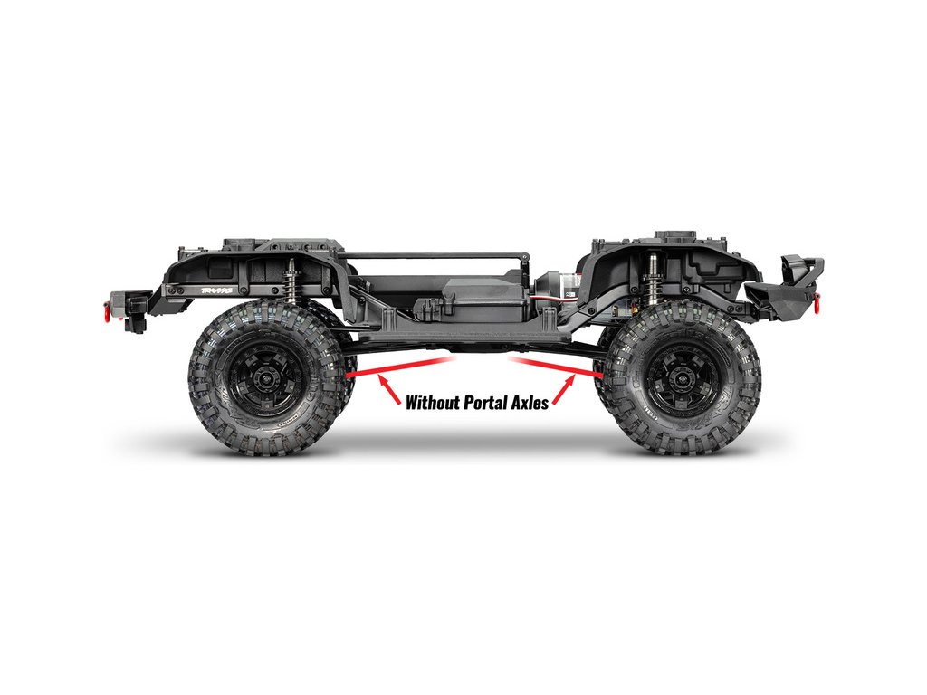 Šasi TRX-4 používá portálové nápravy s nápravovou převodovkou. Nápravová převodovka zvyšuje světlou výšku, snižuje namáhání převodovky, kardanových hřídelí a dále se snižuje torzní síla - model se méně naklápí.