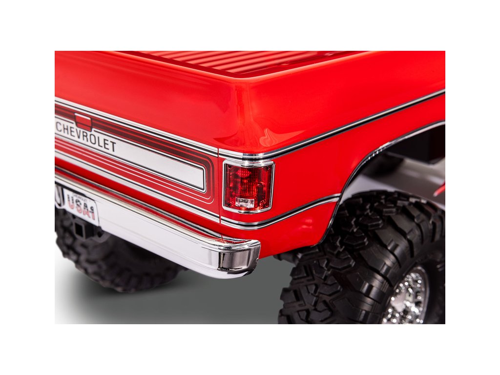 Expediční RC model auta TRX-4 Chevrolet K10 1979 s vyšší světlou výškou, většími 2.2" koly, delším rozvorem a úžasnou bez-sponkovou karoserií. Spousta chromovaných prvků, portálové nápravy, dálkově řízená převodovka a uzávěrky diferenciálů.