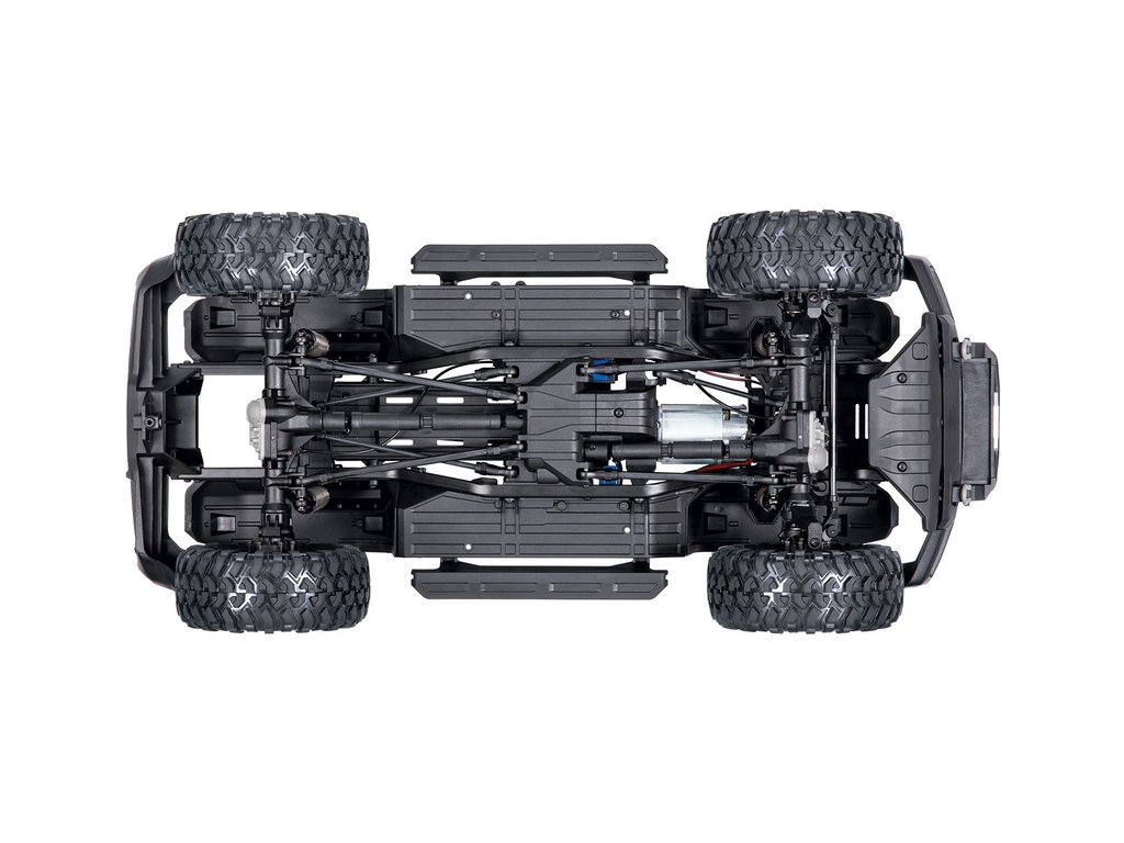 Šasi TRX-4 je postaveno z dvou ocelových profilů, které zabezpečují dostatečnou tuhost podvozku. Díky osvědčenému umístění motoru v přední části je zabezpečen dostatečné zatížení předních kol. Akumulátor je umístěn v ose šasi, takže je model přesně vyvážen a při jízdě se nenaklání. Šasi je promyšleno do nejmenších detailů, včetně vedení kabelů a montážních otovorů pro volitelné příslušenství.