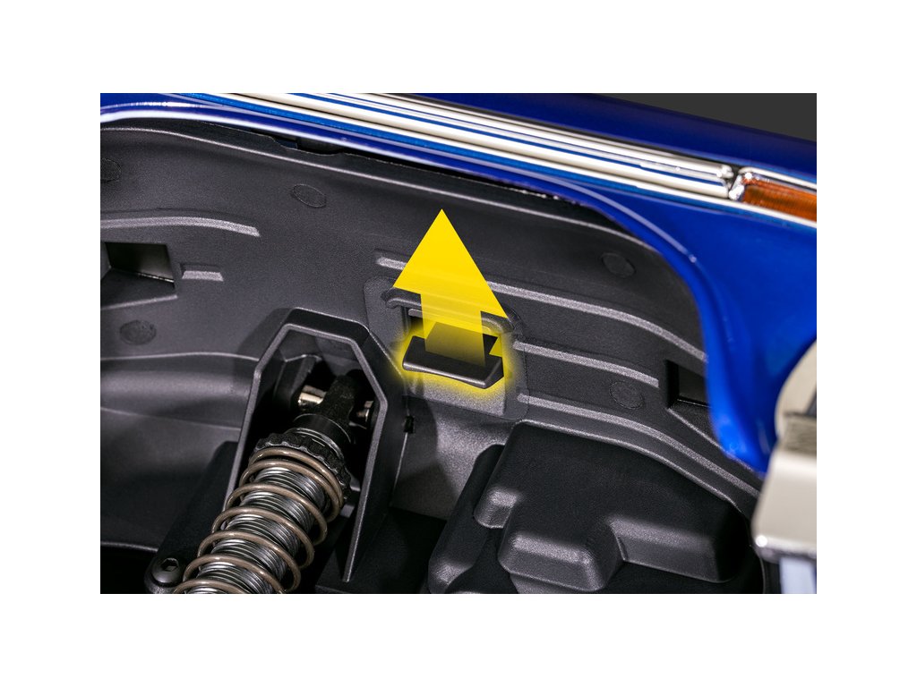 Nový systém uchycení karoserie pomocí zobáčků v podbězích kol zajišťuje rychlou a snadno výměnu baterie a vzhled karoserie neruší sponky. Demontáž karoserie provedete pouze zmáčknutím zobáčku a potáhnutím karoserie nahoru. Nasazení karoserie je ještě jednoduší, stačí ji jen nasadit na šasi.