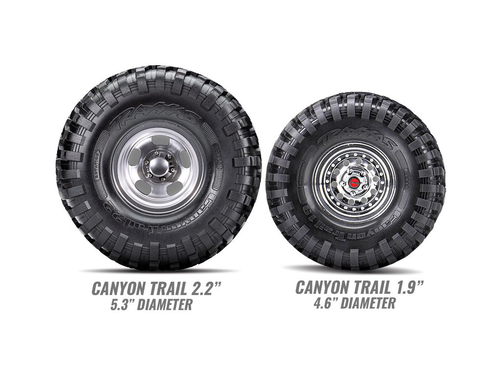 Továrně instalovaná sada Long Arm Lift kit zvyšuje světlou výšku o 2.5 cm. To umožnilo použití větších kol 2.2” s pneumatikami Canyon Trail. S tímto vybavením bude RC model v terénu nepřekonatelný.