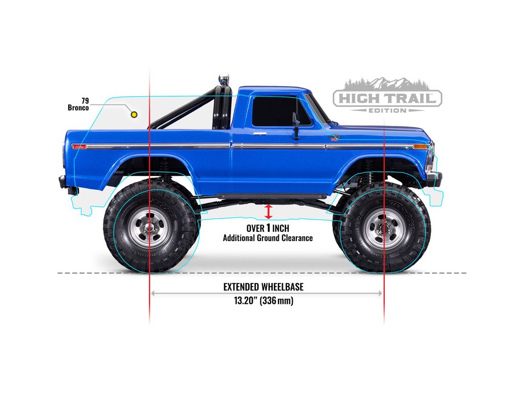Řada špičkových expedičních RC modelů aut Traxxas TRX-4 v měřítku 1:10 se rozrůstá o nový model Ford F-150 z roku 1979 s karoserií ve vrcholové sportovní výbavě Ranger XLT. Osvědčené šasi TRX-4 je nově továrně vybaveno sadou vyššího zdvihu, která přidává navíc 2.5 cm světlé výšky. Díky tomu mohly být na model osazena větší maketová kola 2.2". V kombinaci s novým delším rozvorem 336 mm, je Chevrolet K10 1979 mnohem stabilnější a překoná náročnější terénní překážky.