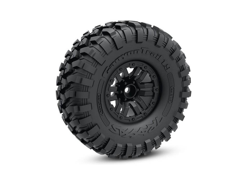 Pneumatiky Canyon Trail z extra měkké směsi S1 pro vysokou trakci jsou nalepeny na černých paprskových kolech 1.9". Unašeč kol je šestihran 12 mm.