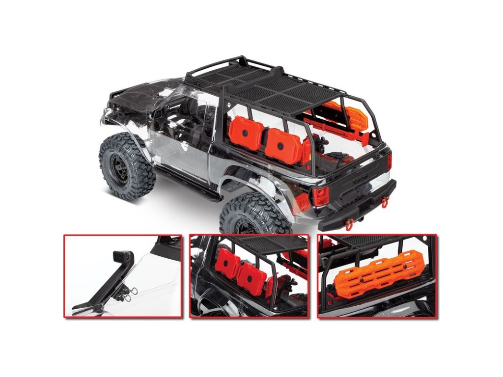 Tento model TRX-4 Sport v provedení Kit je nově vybaven tuningovými díly - střešním nosičem s příslušenstvím, šnorchlem, zrcátky předními a zadními čirými světlomety, připravenými pro montáž LED osvětlení. Bezproblémovou stavbu zaručuje podrobný obrázkový návod.