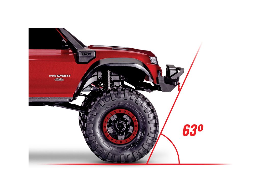 Továrně instalovaná sada Long Arm Lift kit zvyšuje světlou výšku o 2.5 cm. To umožnilo použití větších kol 2.2” s pneumatikami Canyon Trail. S tímto vybavením bude RC model v terénu nepřekonatelný.