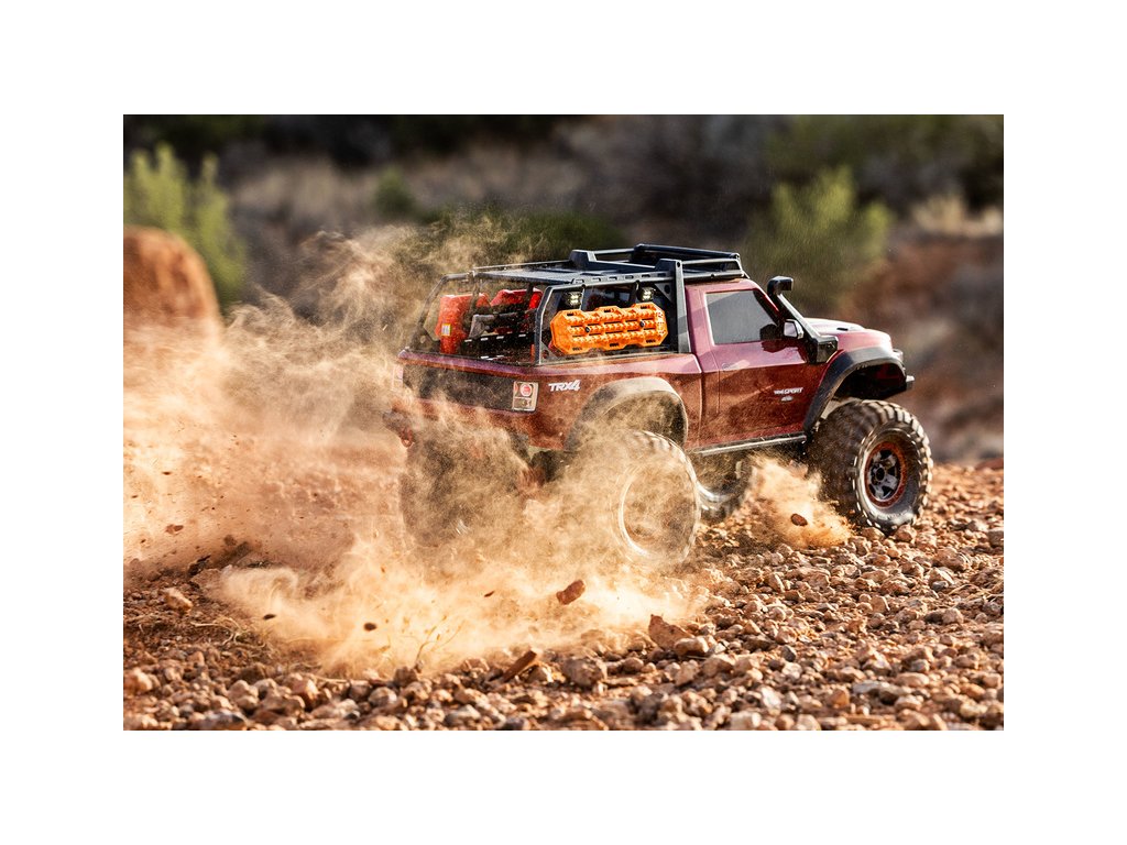 Expediční RC model auta TRX-4 Sport v edici High Trail s vyšší světlou výškou, většími 2.2" koly a bez-sponkovou karoserií. Špičkový podvozek TRX-4 s portálovými nápravami, nárazník s přípravou pro naviják a zadní nosič korby s maketovým příslušenstvím.