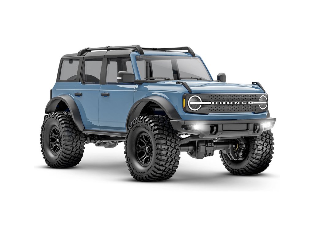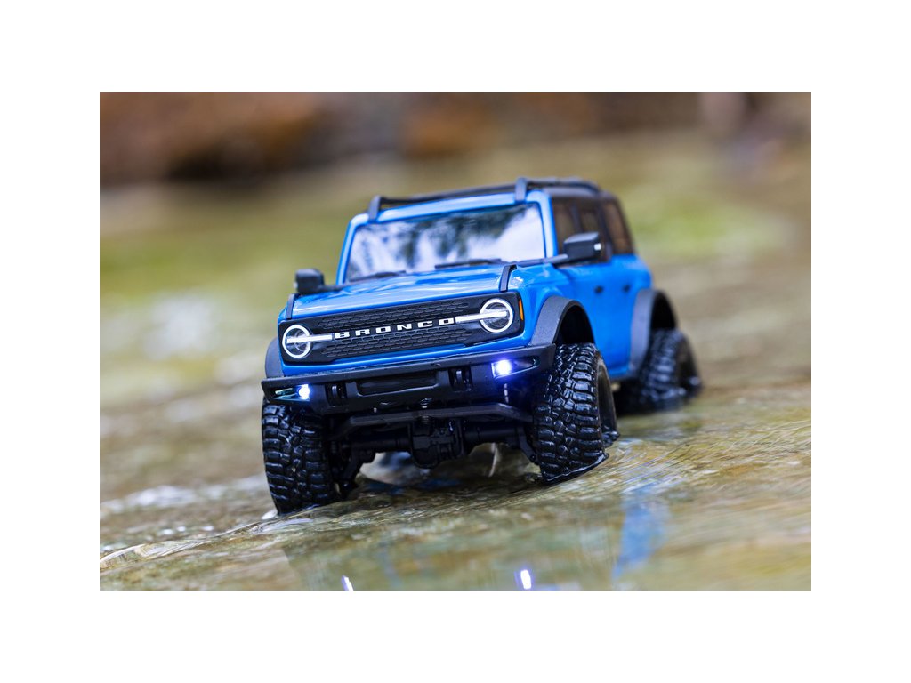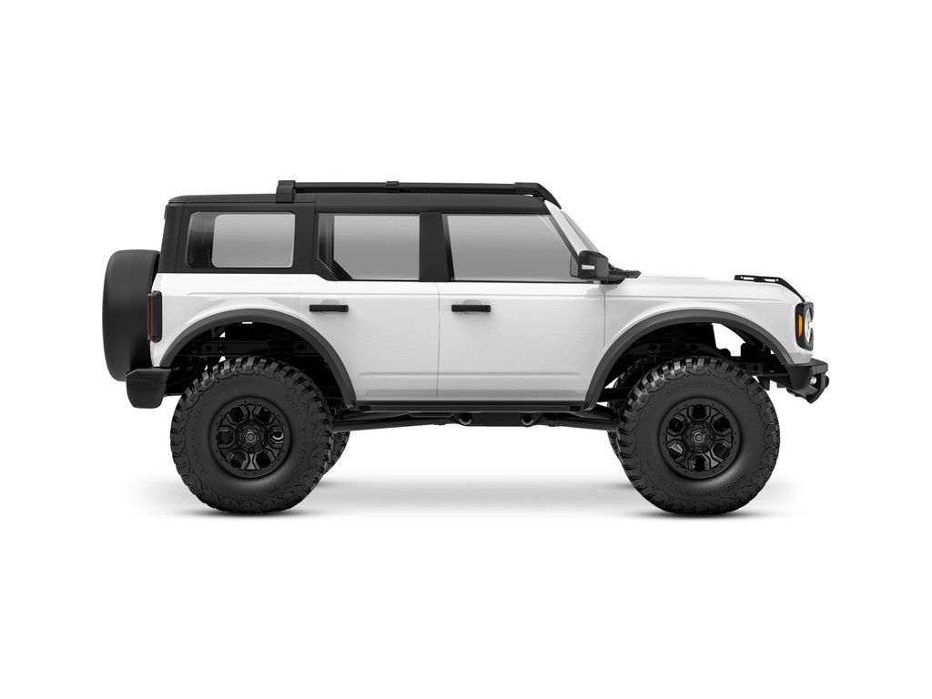 RC model auta Traxxas TRX-4M Ford Bronco 2021 v měřítku 1:18 s úžasnou všestranností a schopnostmi. Kovový rám podvozku se 4-bodovým zavěšením, olejové tlumiče, úhel zatáčení 45°, licencovaná bez-sponková karoserie, LED osvětlení v nárazníku. LiPo baterie a USB nabíječ.