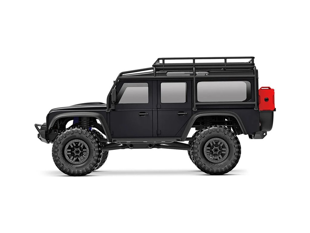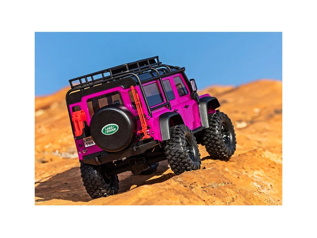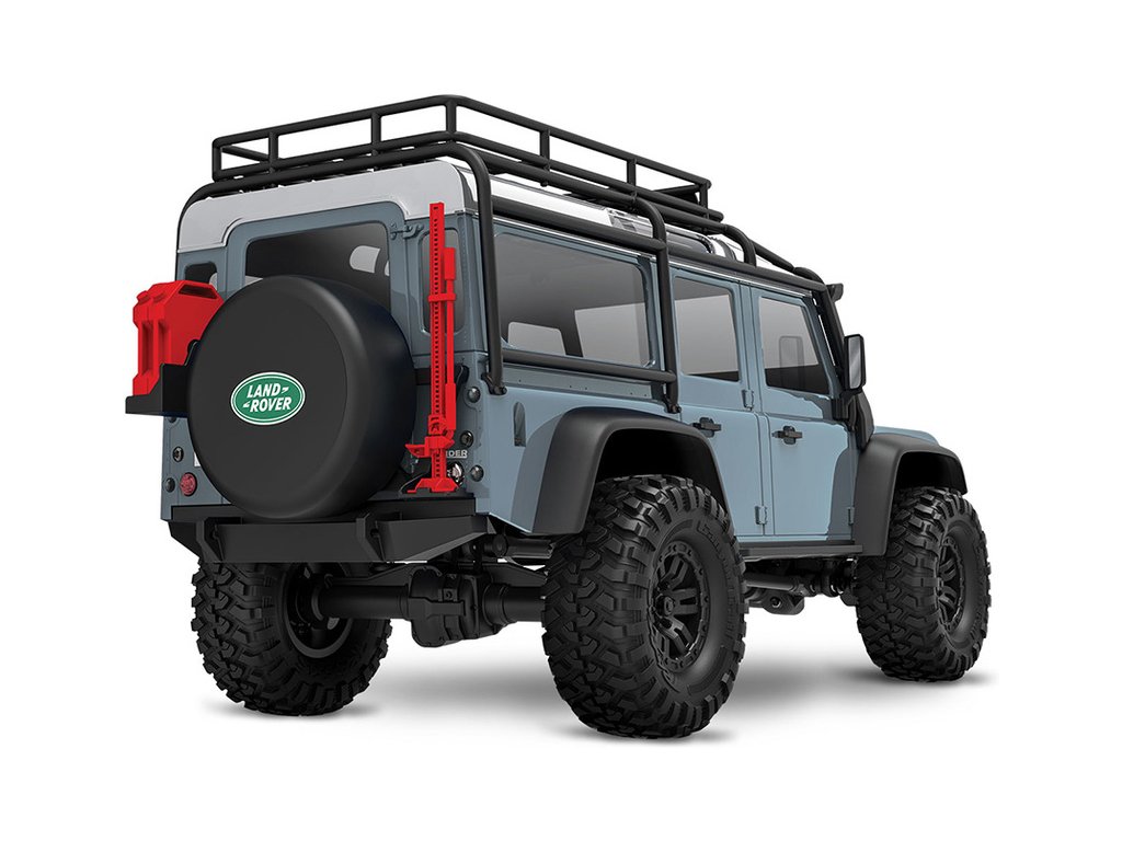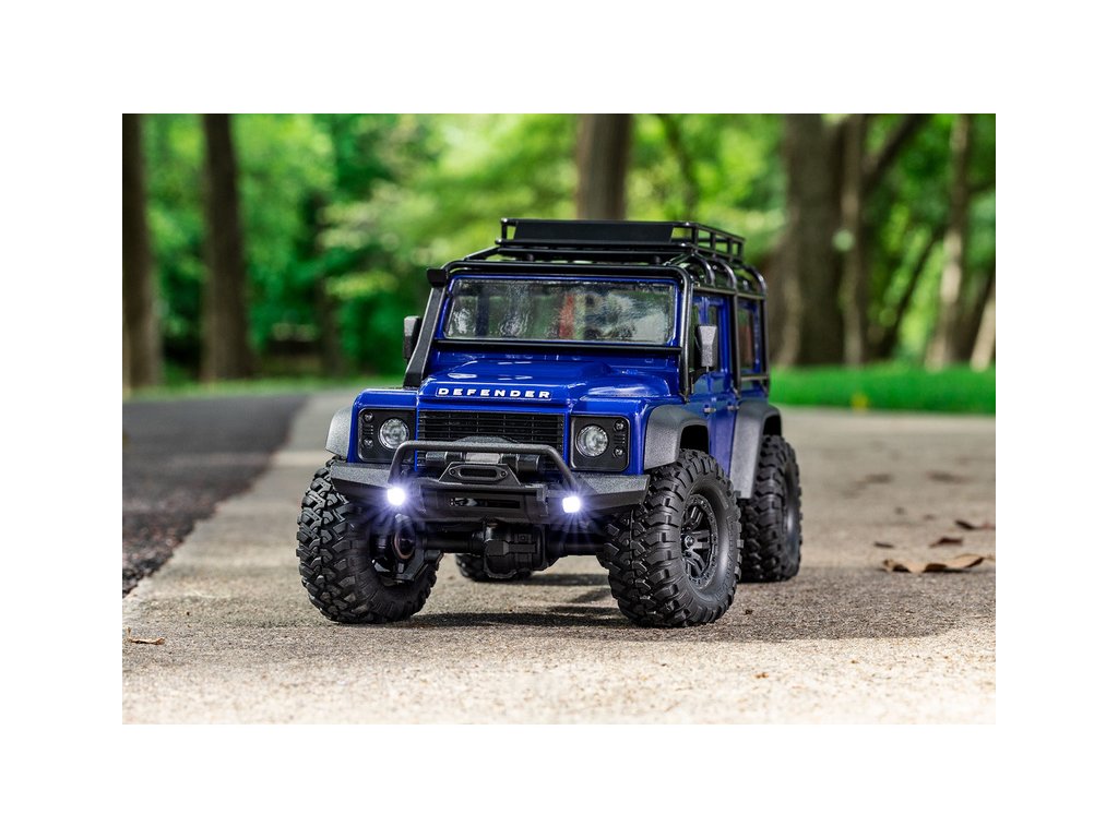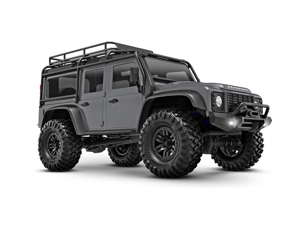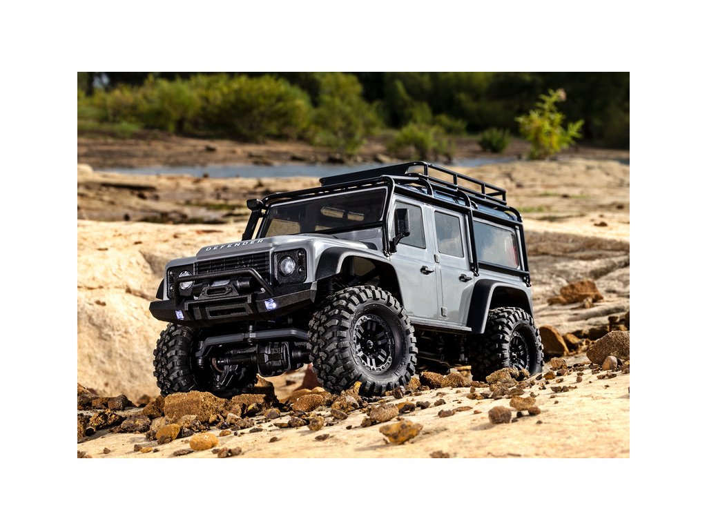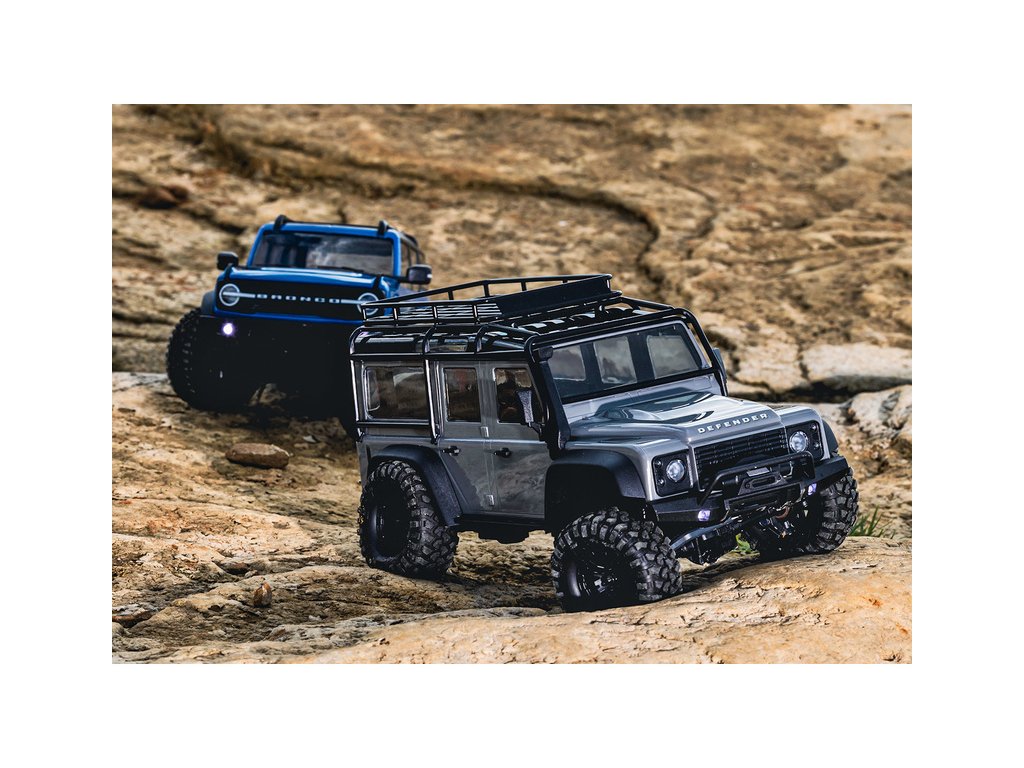 RC model auta Traxxas TRX-4M Land Rover Defender v měřítku 1:18 s úžasnou všestranností a schopnostmi. Kovový rám podvozku se 4-bodovým zavěšením, olejové tlumiče, úhel zatáčení 45°, licencovaná bez-sponková karoserie, LED osvětlení v nárazníku. Baterie 2S LiPo a USB nabíječ.