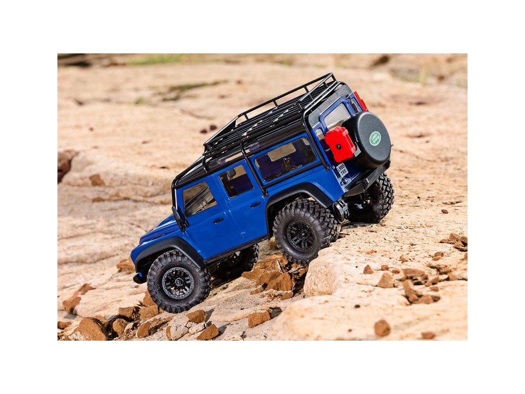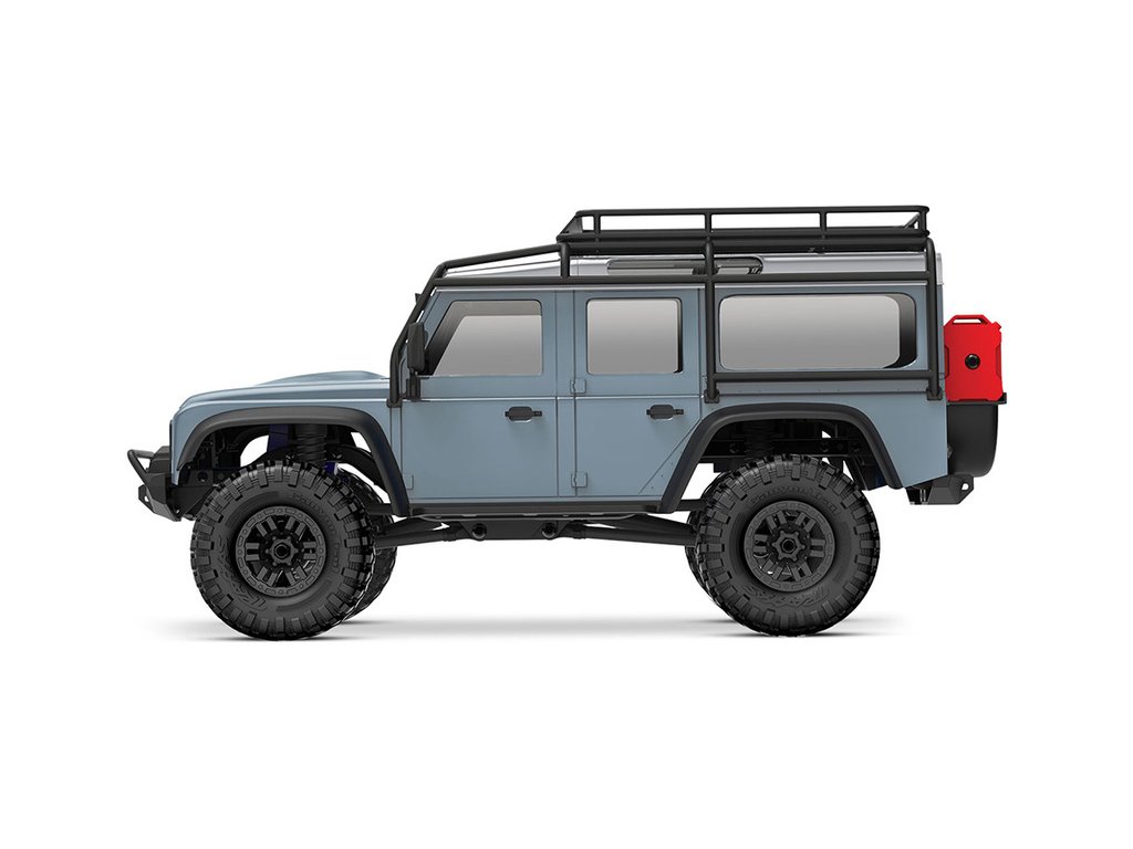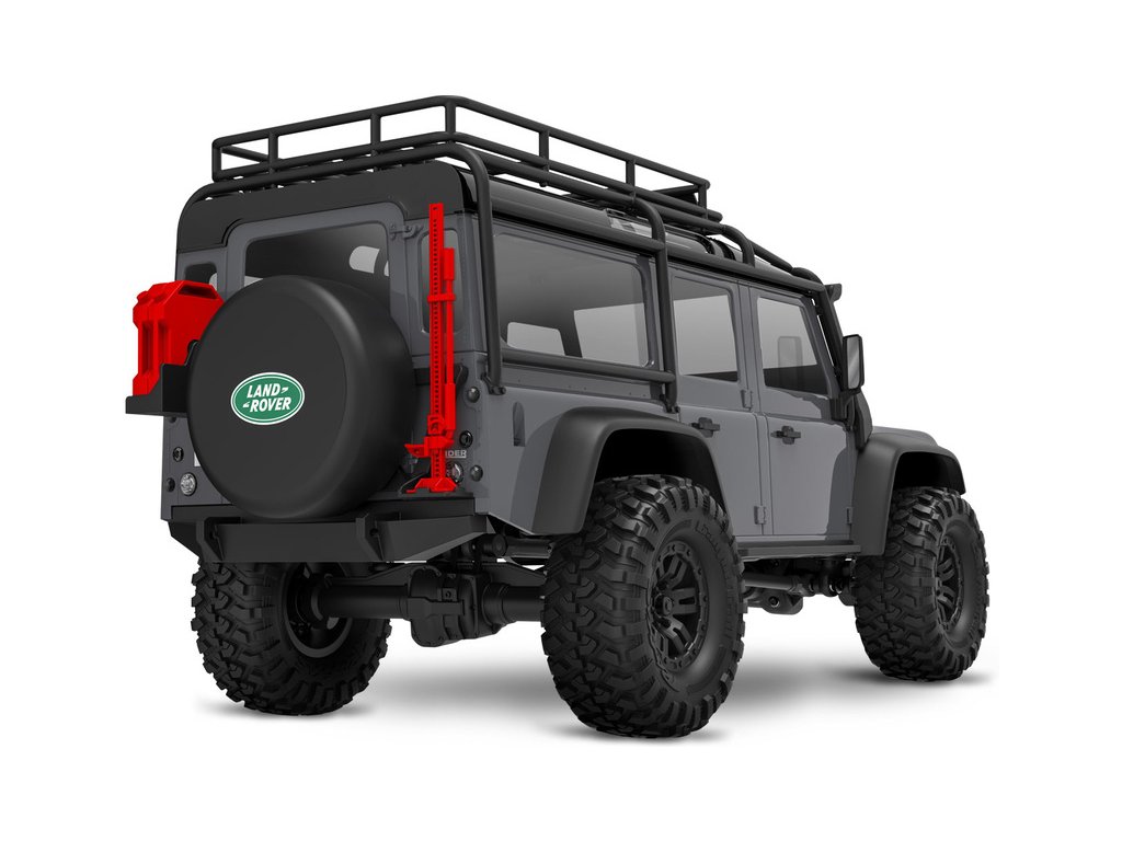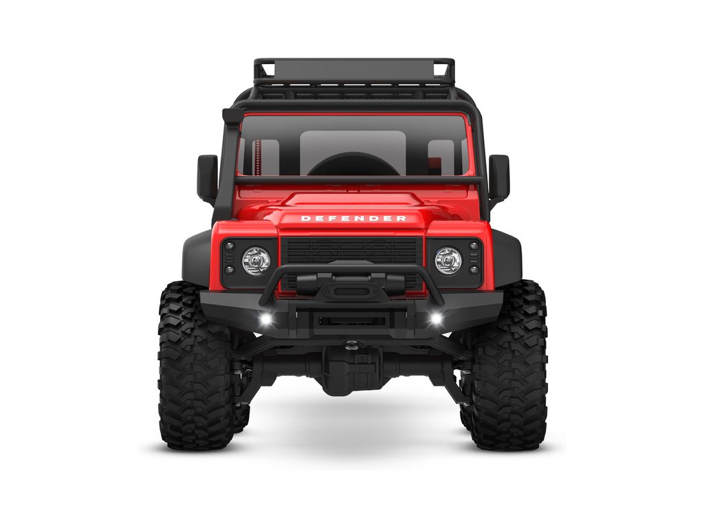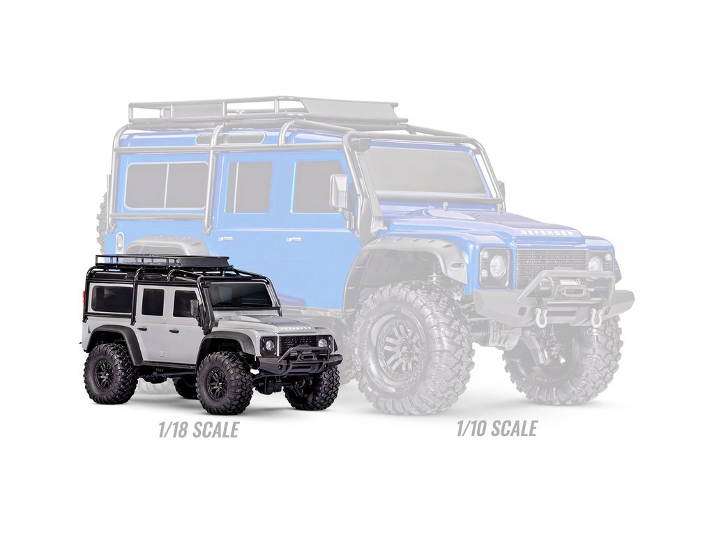 RC model auta Traxxas TRX-4M Land Rover Defender v měřítku 1:18 s úžasnou všestranností a schopnostmi. Kovový rám podvozku se 4-bodovým zavěšením, olejové tlumiče, úhel zatáčení 45°, licencovaná bez-sponková karoserie, LED osvětlení v nárazníku. Baterie 2S LiPo a USB nabíječ.