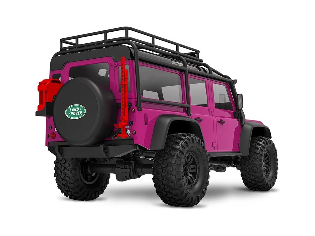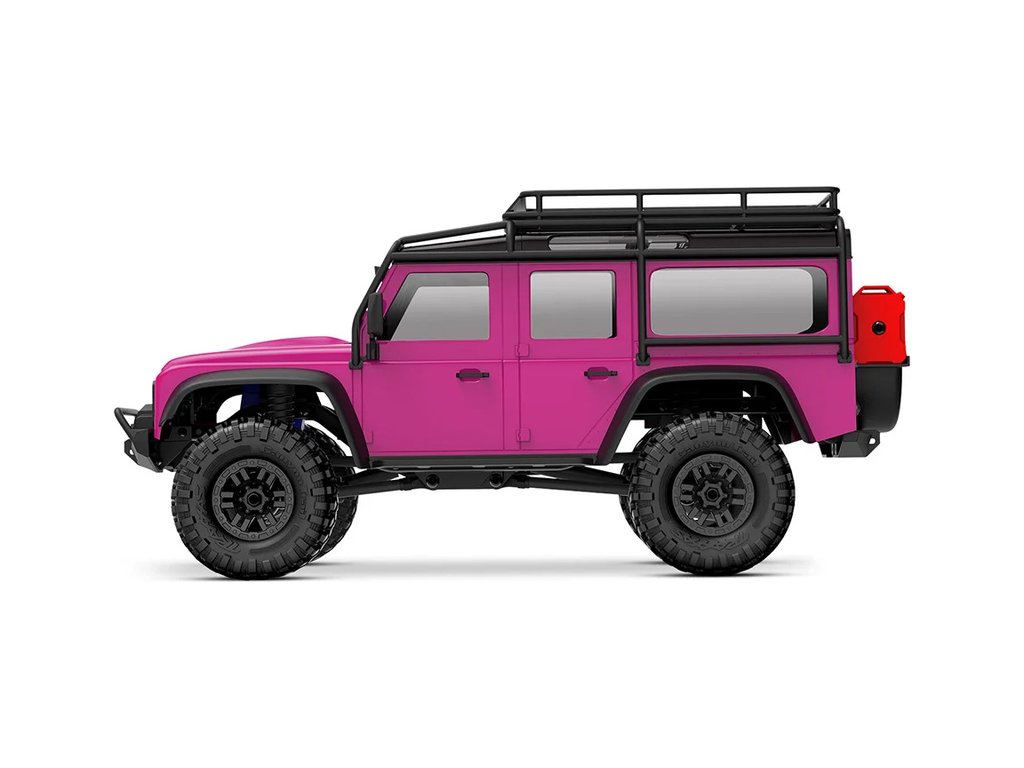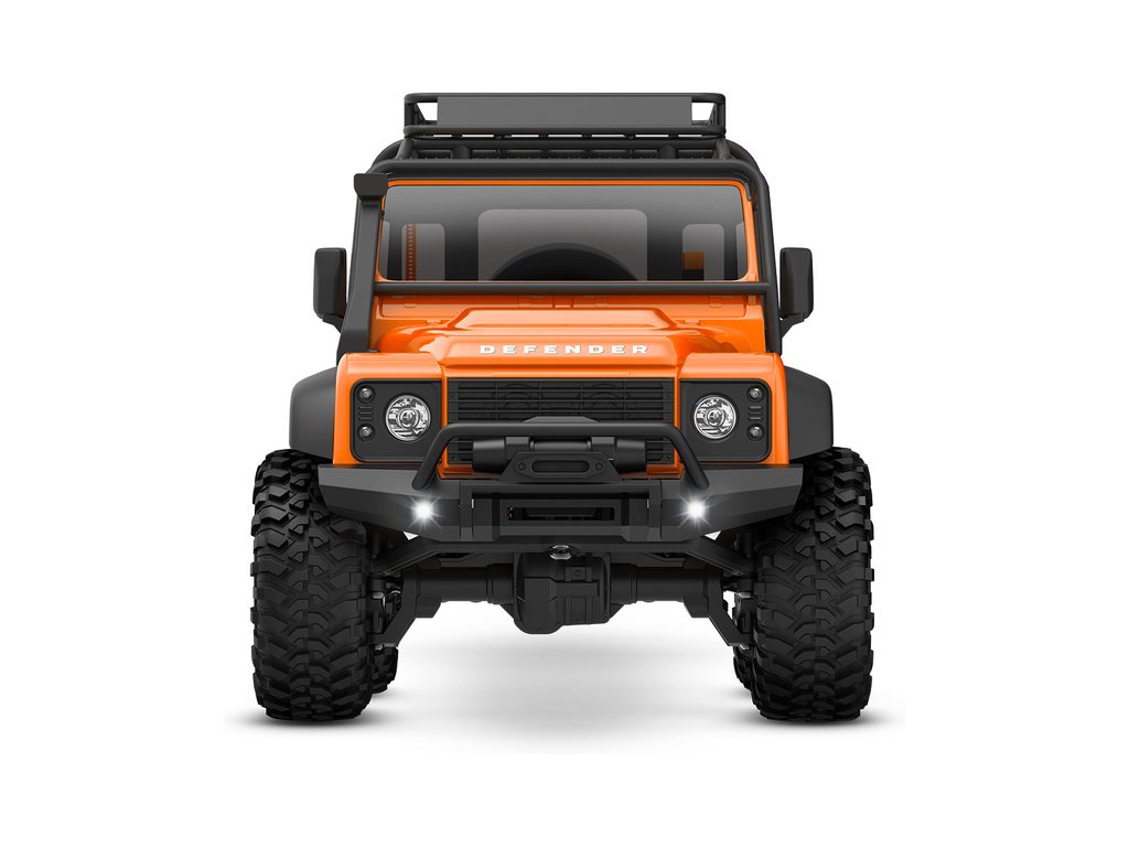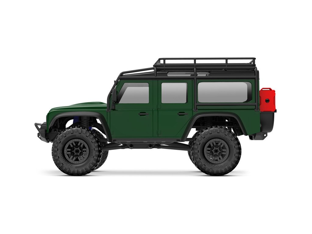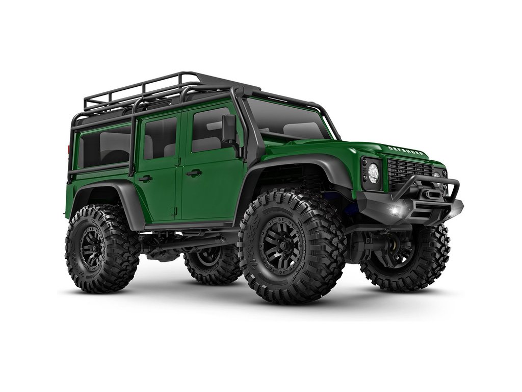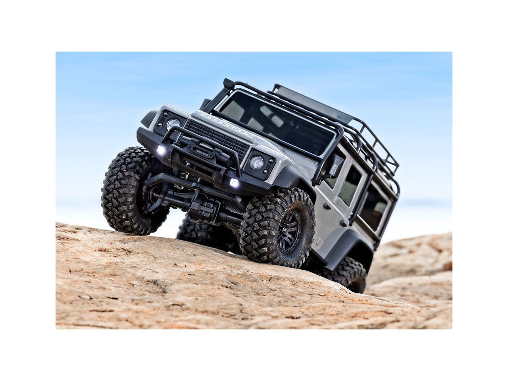 RC model auta Traxxas TRX-4M Land Rover Defender v měřítku 1:18 s úžasnou všestranností a schopnostmi. Kovový rám podvozku se 4-bodovým zavěšením, olejové tlumiče, úhel zatáčení 45°, licencovaná bez-sponková karoserie, LED osvětlení v nárazníku. Baterie 2S LiPo a USB nabíječ.
