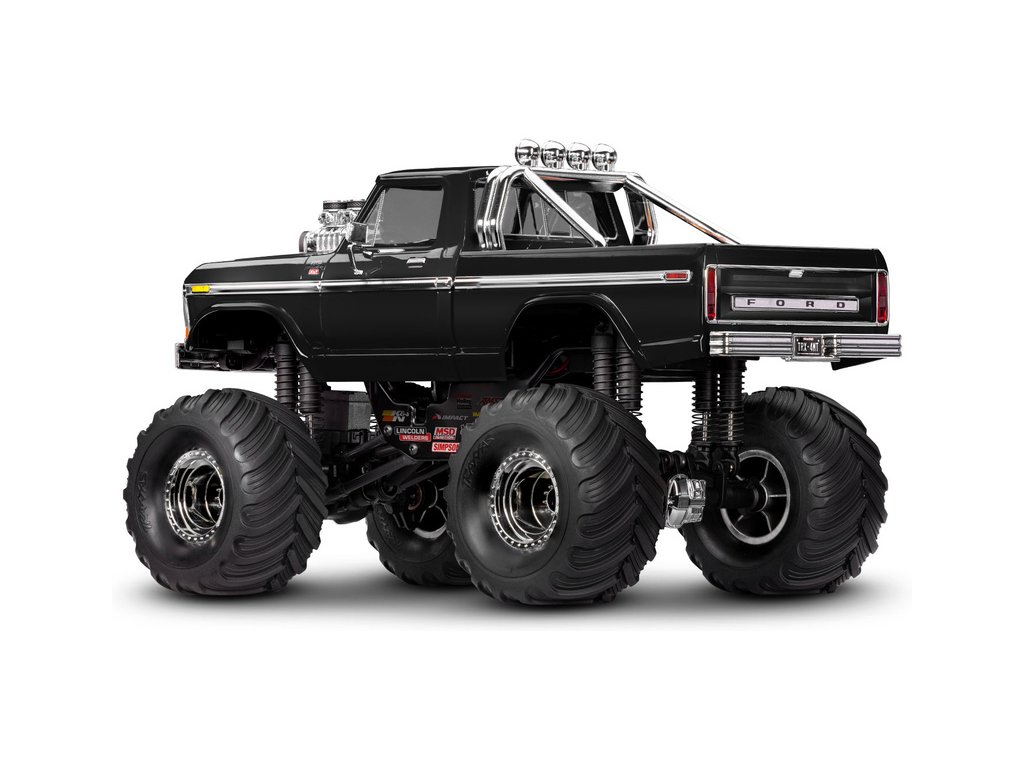 RC model auta Traxxas TRX-4MT Ford F-150 v edici Monster Truck s vyšší světlou výškou, obřími koly, úžasnou všestranností a schopnostmi. 4-bodové zavěšení, dvojité olejové tlumiče, kovové převody serva, úhel zatáčení 45°, bez-sponková karoserie, LED světlomety. Baterie 2S LiPo a USB nabíječ.