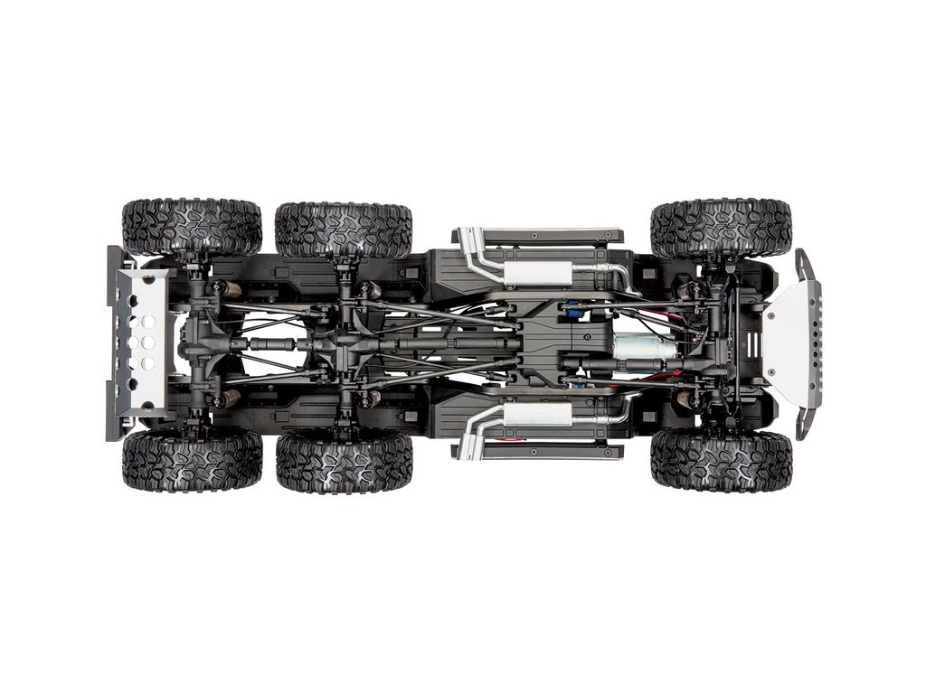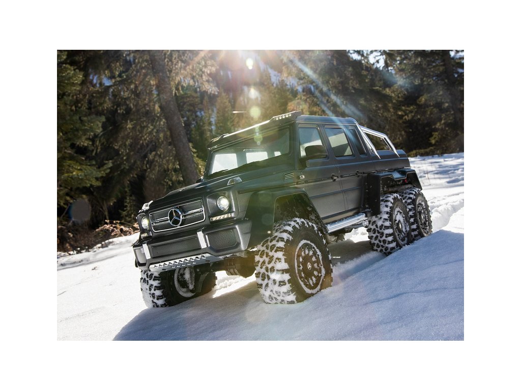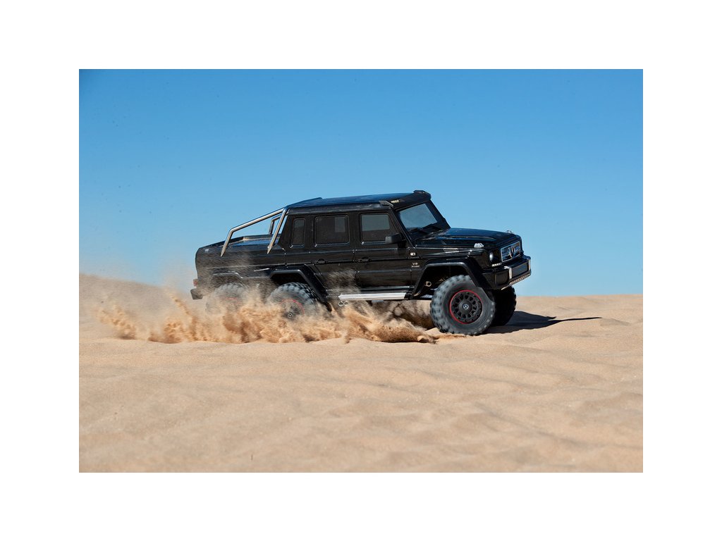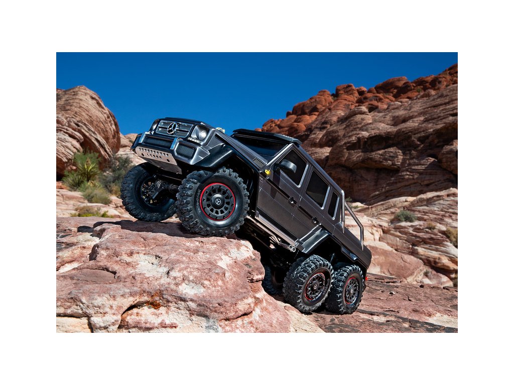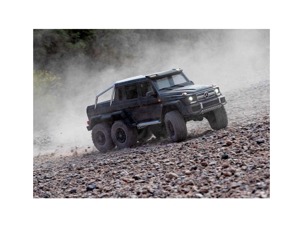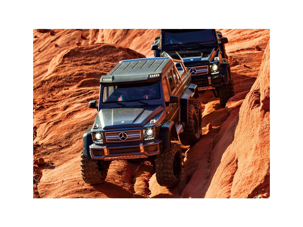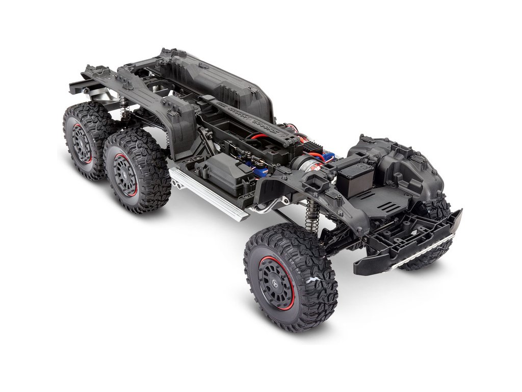 Expediční RC model Traxxas TRX-6 Mercedes G 63 6x6, je postaven na šasi TRX-4. Všechny přednosti toho šasi, jako jsou portálové nápravy, čtyřbodové zavěšení, dálkově ovládané diferenciály, dálkově ovládaná dvourychlostní převodovka, vysoký úhel zatáčení kol a další, byly zachovány a navíc byla přidána další náprava. Unikátní náhon 6x6, tak bude v terénu nepřekonatelný. Výborné zpracování podtrhuje bezsponková karoserie pro rychlou a snadnou výměnu akumulátoru. Věrně zpracovaná karoserie zachovává všechny detaily, včetně množství chromovaných dílů a čirých oken, která dotvářejí 3D vzhled RC modelu.
