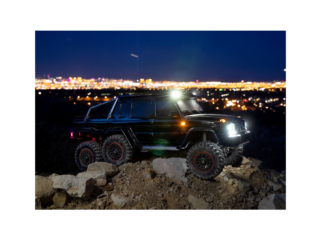 TRX-6 Mercedes 6x6 je již vybaven kompletním osvětlení, které trvale svítí. Stačí jen zapnout model a nechat se unést úžasnými večerními vyjížďkami. LED osvětlení nejen skvěle vypadá, ale také perfektně nasvítí cestu.