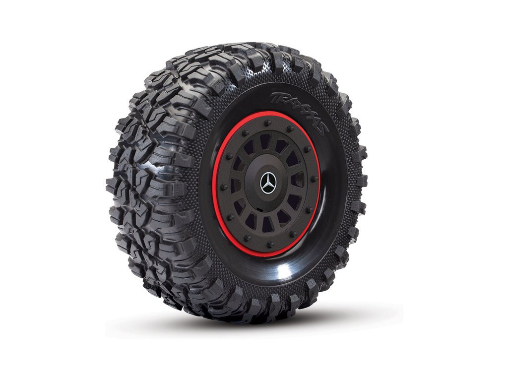 Stejně jako celý RC model i kola jsou zpracovaná do nejmenších detailů. Stylový červený proužek a znak Mercedes nechybí na žádném z šesti kol. Na discích jsou nalepené měkké pneumatiky S1 určené do všech typů terénů. Standardní unášeč 12 mm hex.