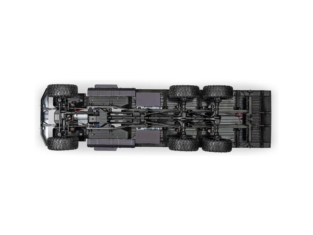 Tento šestikolový nákladní model disponuje nepřekonatelnými jízdními vlastnostmi a všestranností, což oceníte při jízdě po silnici i při náročných expedičních jízdách v těžkém terénu. To je dáno prodlouženým podvozkem TRX-6, vybaveným portálovými nápravami, čtyřbodovým zavěšením, dálkově ovládanými diferenciály a dálkově ovládanou dvourychlostní převodovkou.
