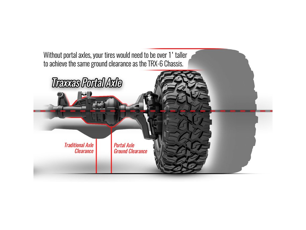 Šasi TRX-6 používá portálové nápravy s nápravovou převodovkou. Nápravová převodovka zvyšuje světlou výšku, snižuje namáhání diferenciálů, převodovky, kardanových hřídelí a dále se snižuje torzní síla - model se méně naklápí.