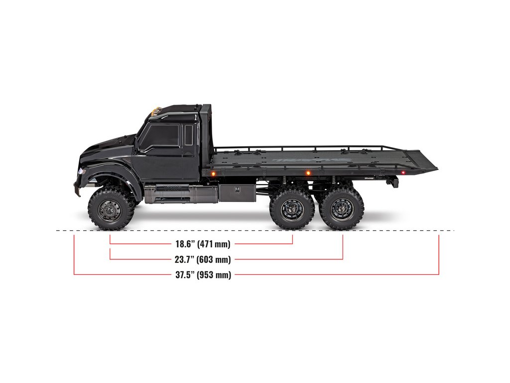 Ultimate RC Hauler je největší model TRX-6 ® s extra prodlouženým rozvorem 603 mm a velkým valníkem pro stylový transport vašich dalších modelů. Na valníku jsou nastavitelné klíny, ke kterým lze naložený model zafixovat pomocí přiložených upínacích popruhů. Na valníku lze přepravovat nejrůznější typy modelů v měřítku 1:10, jako například Traxxas 4-Tec.