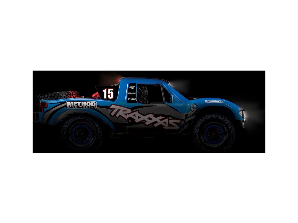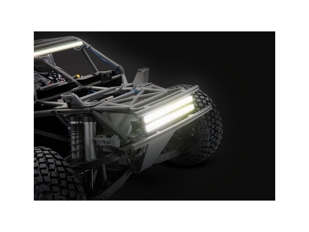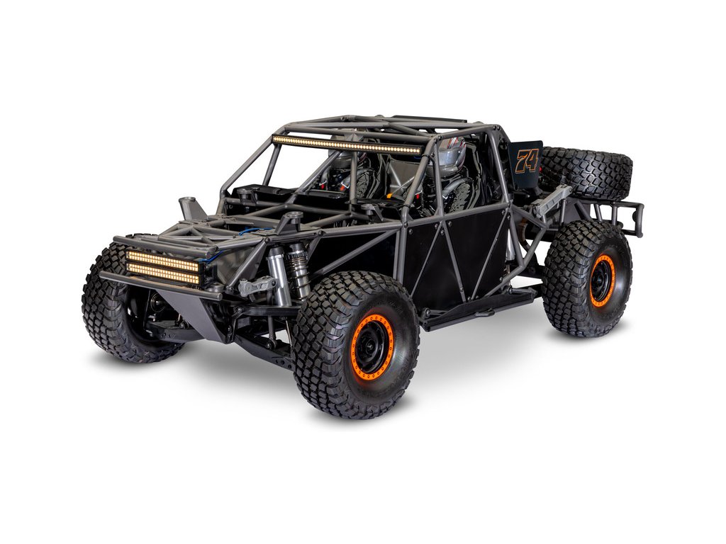 RC model auta Traxxas Desert Racer. Nejrealističtější zpracování pouštního závoďáku s autentickou klecí, kabinou a zavěšením. Kompletní chytré LED osvětlení s funkčními brzdovými světly. Výkonný střídavý pohon. Elektronická stabilizace jízdy. Rychlost až 80 km/h