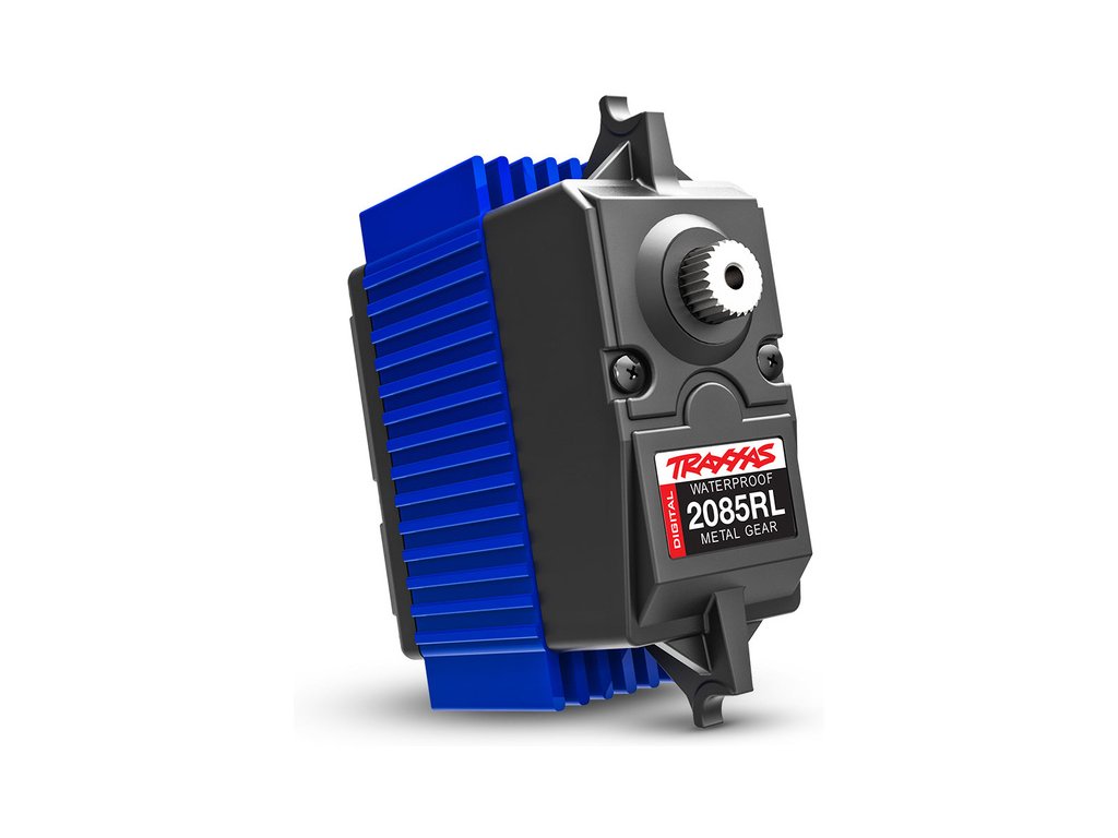 Řízení je realizováno pomocí robustního, digitálního serva Traxxas - TRA2085R. Servo velikosti maxi má moment 46 kg.cm, rychlost 0.13 s/60°. Kovové převody. Dvakrát kuličkové ložisko na hřídeli tisícihranu, pro precizní chod. Voděodolná* konstrukce. Účinné chlazení serva zajišťuje středový chladič.