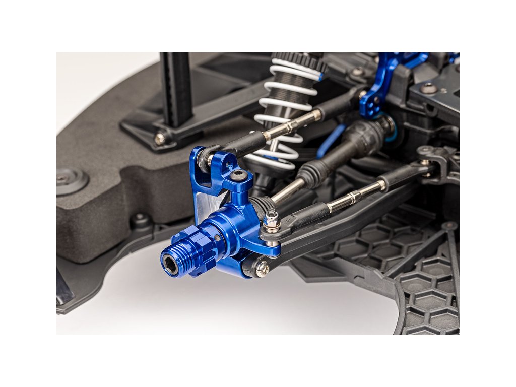 K řízení je určeno Digital High-Torque servo 2075 a dvojitý servo-saver Dual-Bellcrank, který chrání celý mechanizmus v případě nárazu. K seřízení odklonu a sbíhavosti slouží pevné 4 mm ocelové napínáky. Vše je již nastaveno a seřízeno, nápravy lze snadno nastavit upravit geometrii podle vlastní potřeby. Klíčové díly závěsů kol jsou vyrobeny z hliníkových slitin.